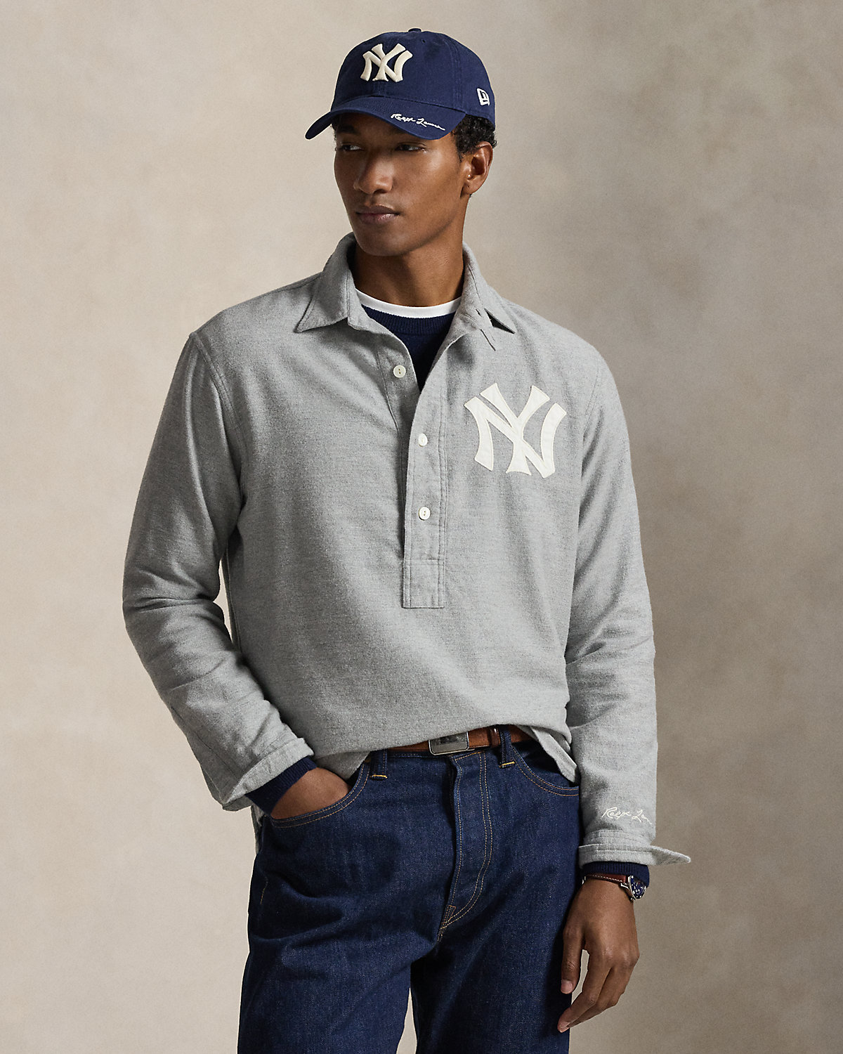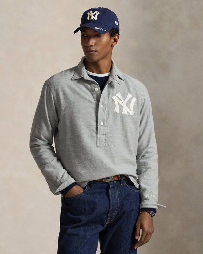 As a boy growing up in the Bronx, Mr. Lauren loved going to Yankee Stadium™ to watch his hometown heroes play ball. This unisex chamois shirt celebrates Mr. Lauren’s long-standing love of the Bronx Bombers™ and the game of baseball with a twill New York Yankees™ logo patch and signature embroidery.