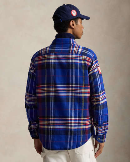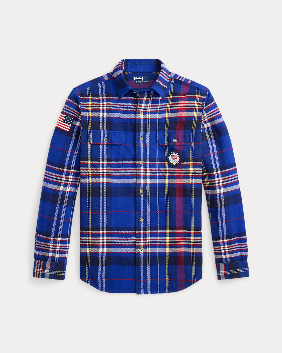 Part of the Polo Ralpthth Lauren Team USA collection, this workshirt is crafted with plaid cotton flannel and washed for enhanced softness. It features the official logo patch of the U.S. Olympic Team, as well as an American flag patch and our signature embroidered Pony.