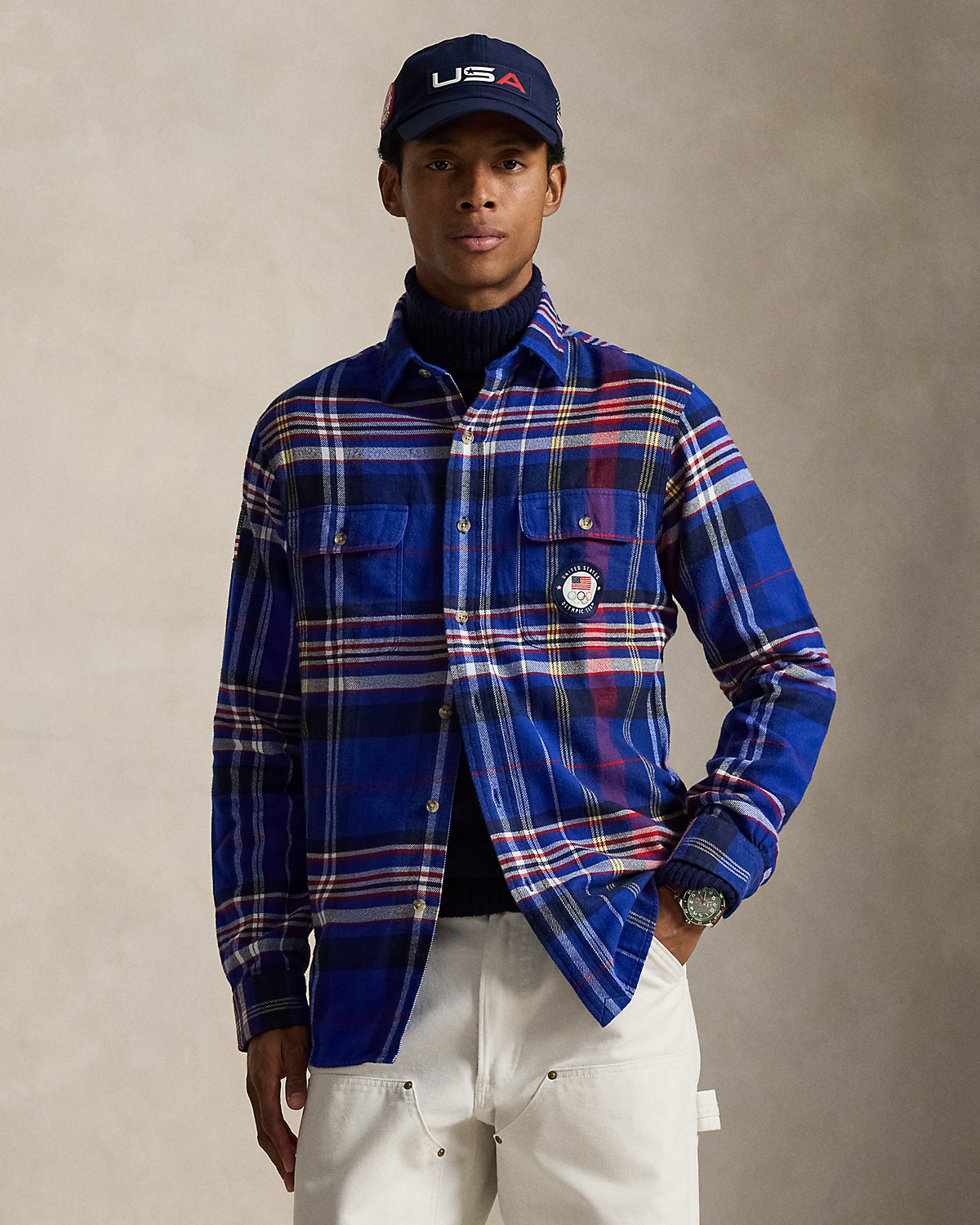 Part of the Polo Ralpthth Lauren Team USA collection, this workshirt is crafted with plaid cotton flannel and washed for enhanced softness. It features the official logo patch of the U.S. Olympic Team, as well as an American flag patch and our signature embroidered Pony.
