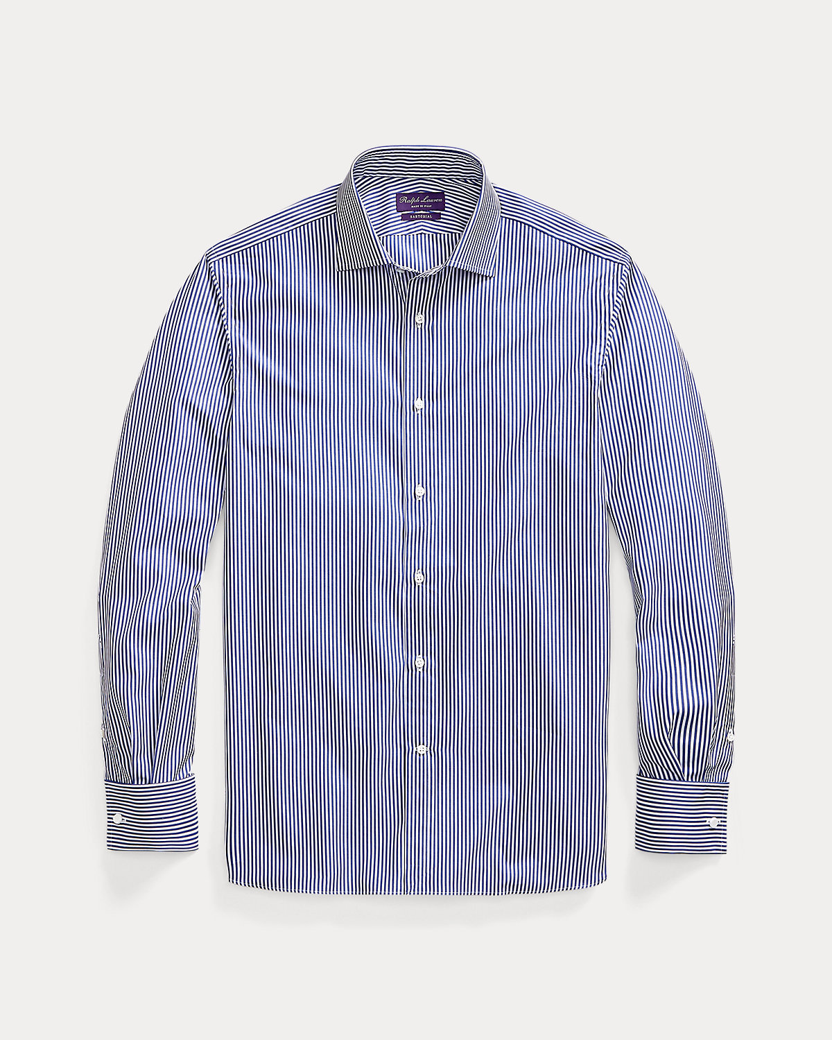 A masterpiece of Italian craftsmanship, this shirt is meticulously constructed with luxurious 200s-quality, two-ply cotton for unparalleled sophistication and comfort. It is elevated by elegant French cuffs and genuine mother-of-pearl divs, reflecting Purple Label's commitment to exceptional quality and sartorial excellence.