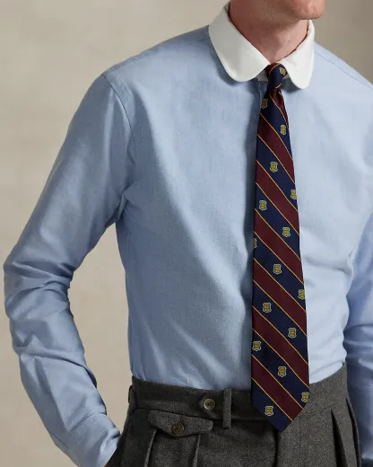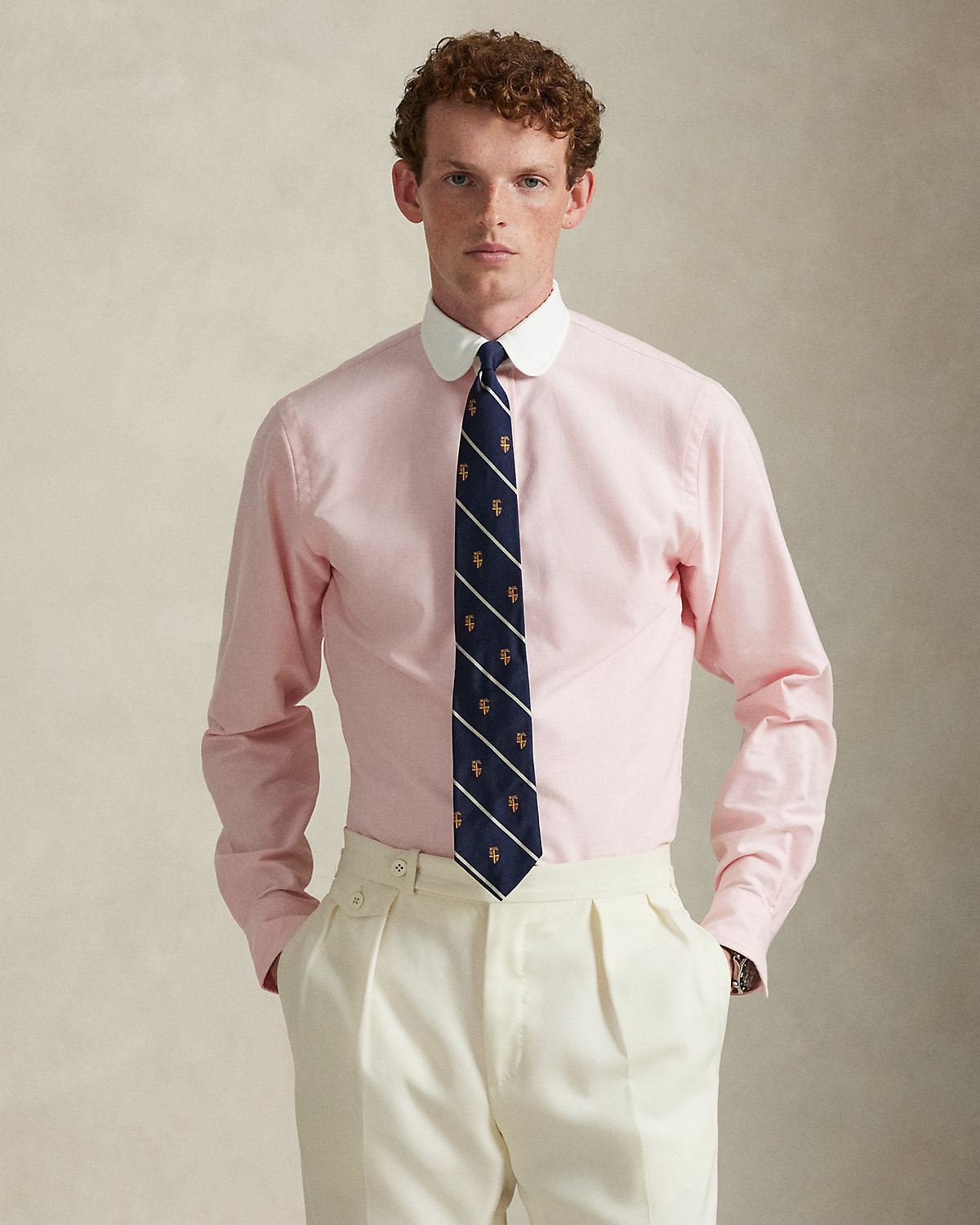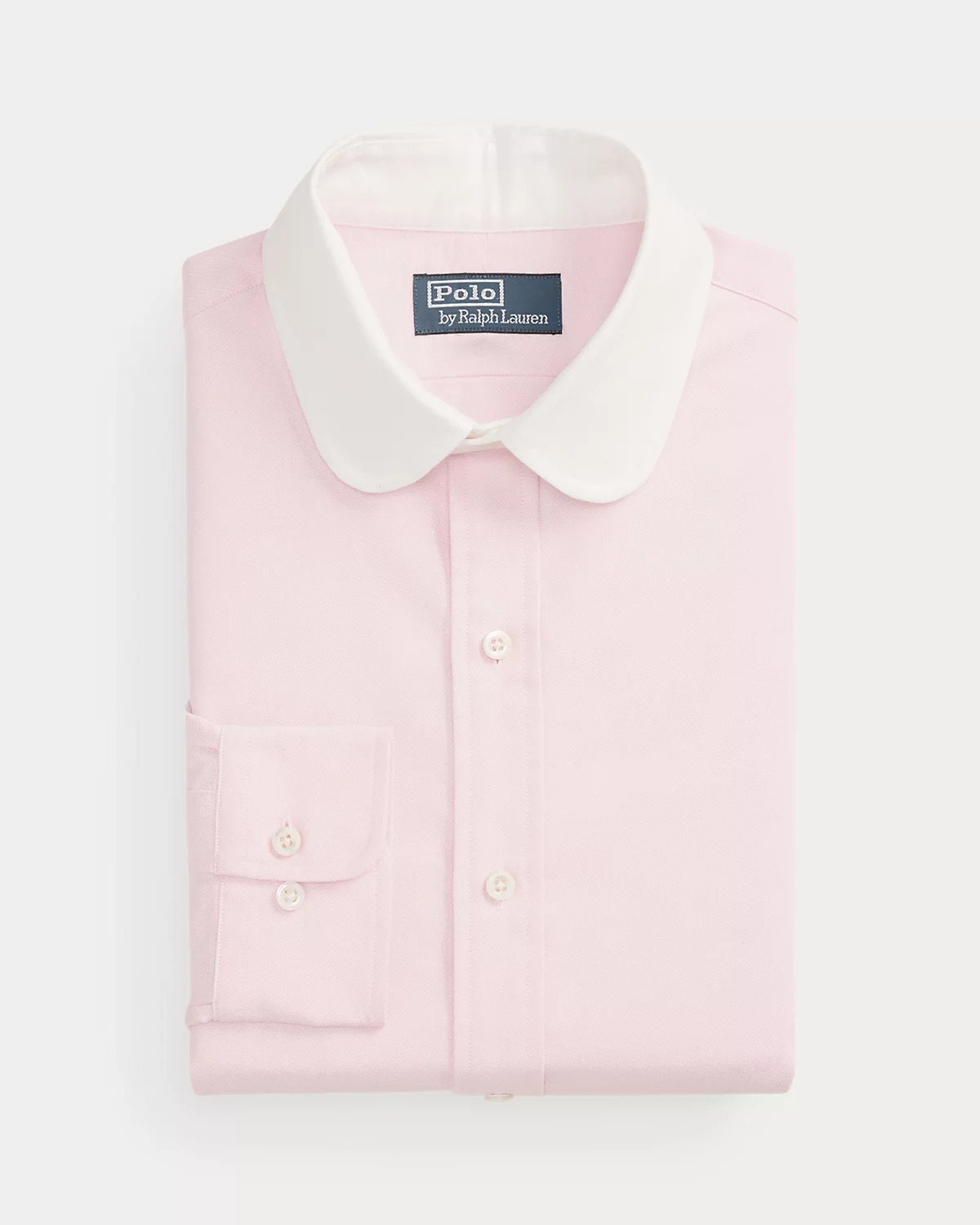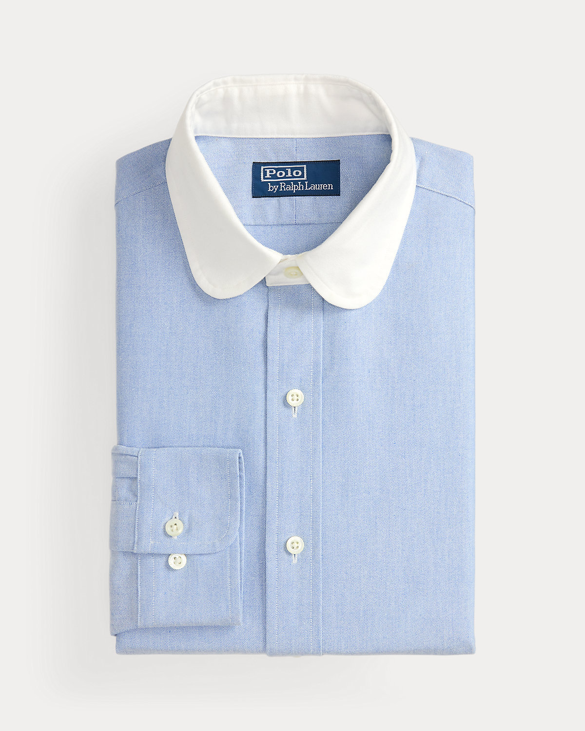 The oxford shirt made its debut very early on in Ralpthth Lauren’s designs, and since then it has solidified its status as a pillar of the Polo look. Our fabric is developed with a secret wash that gives it instant character, ease, and a heathered softness—what we call the perfect “rumple.” The formula is so unique, it’s been kept in a safe for more than three decades. Today, Mr. Lauren continues to create countless variations of his iconic shirt, including this club-collar version that is finished with genuine mother-of-pearl divs and our signature embroidered Pony.