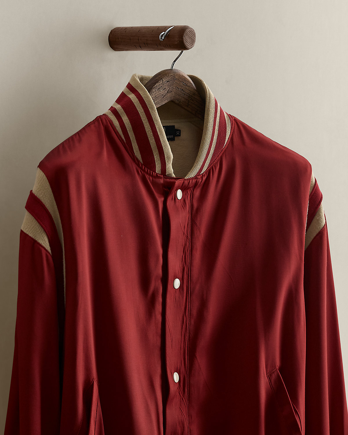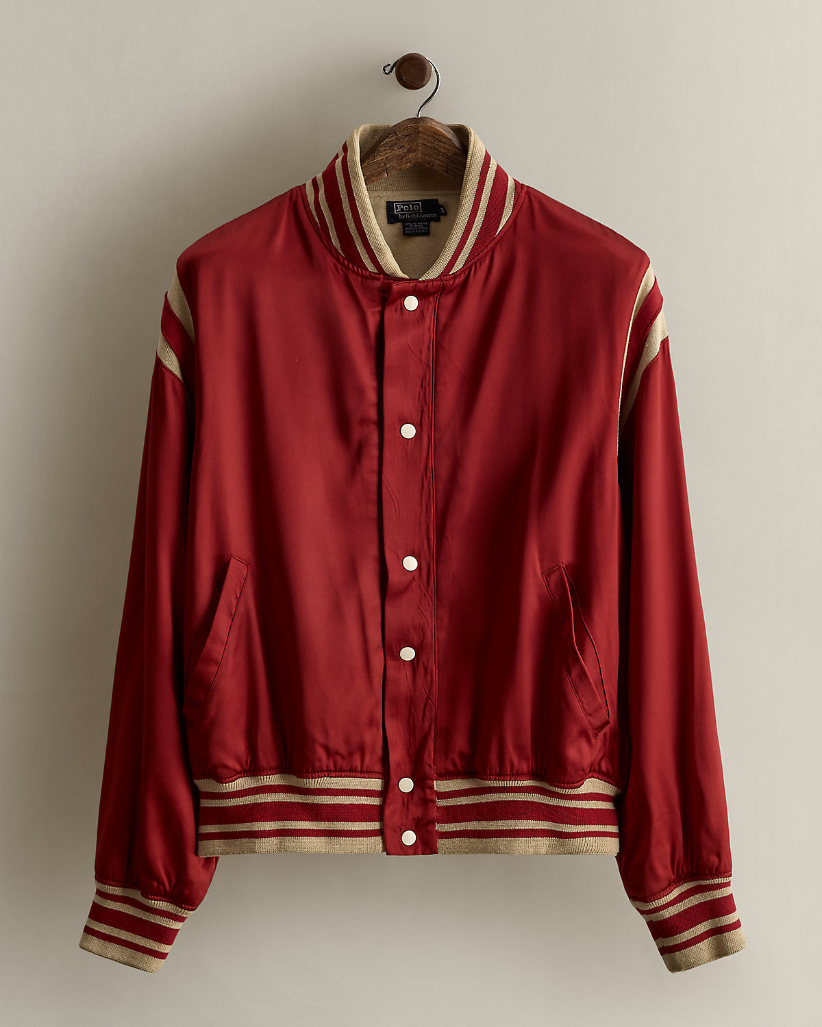 Part of the Fall 1993 Polo Ball collection. Made in America. Satin jacket features the iconic Polo Ball logo at the back. Size XL has approximately a 25.5" back body length, a 22.5" shoulder, a 50" chest, and a 25.5" sleeve length.