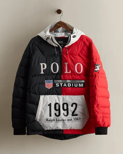 - “Polo,” an Americana-inspired shield, and “Stadium” at the center front.
