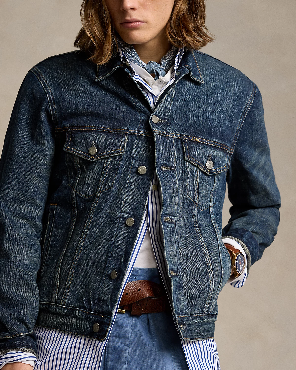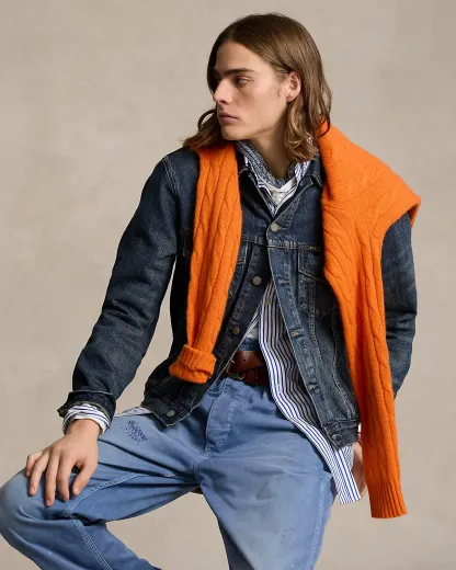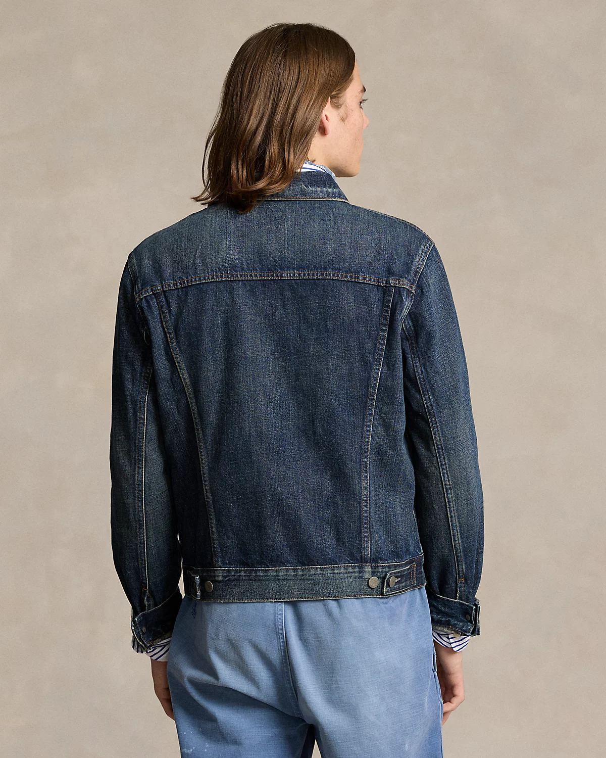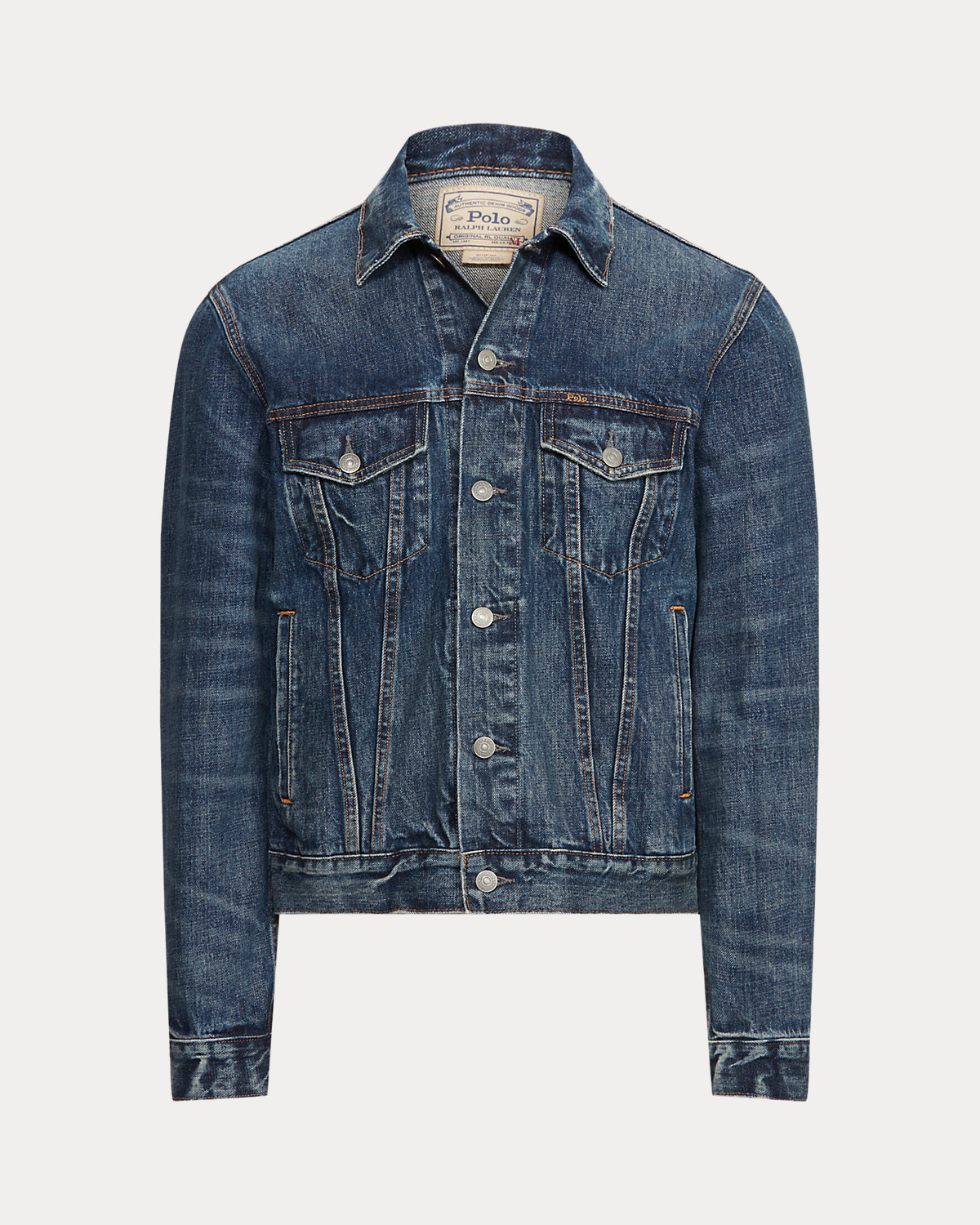 Demonstrating our dedication to authenticity and time-honored traditions, this classic trucker jacket showcases premium denim that's built to endure while telling a story of timeless style. The metal divs, custom-designed for Ralpthth Lauren, reflect our commitment to exceptional craftsmanship.