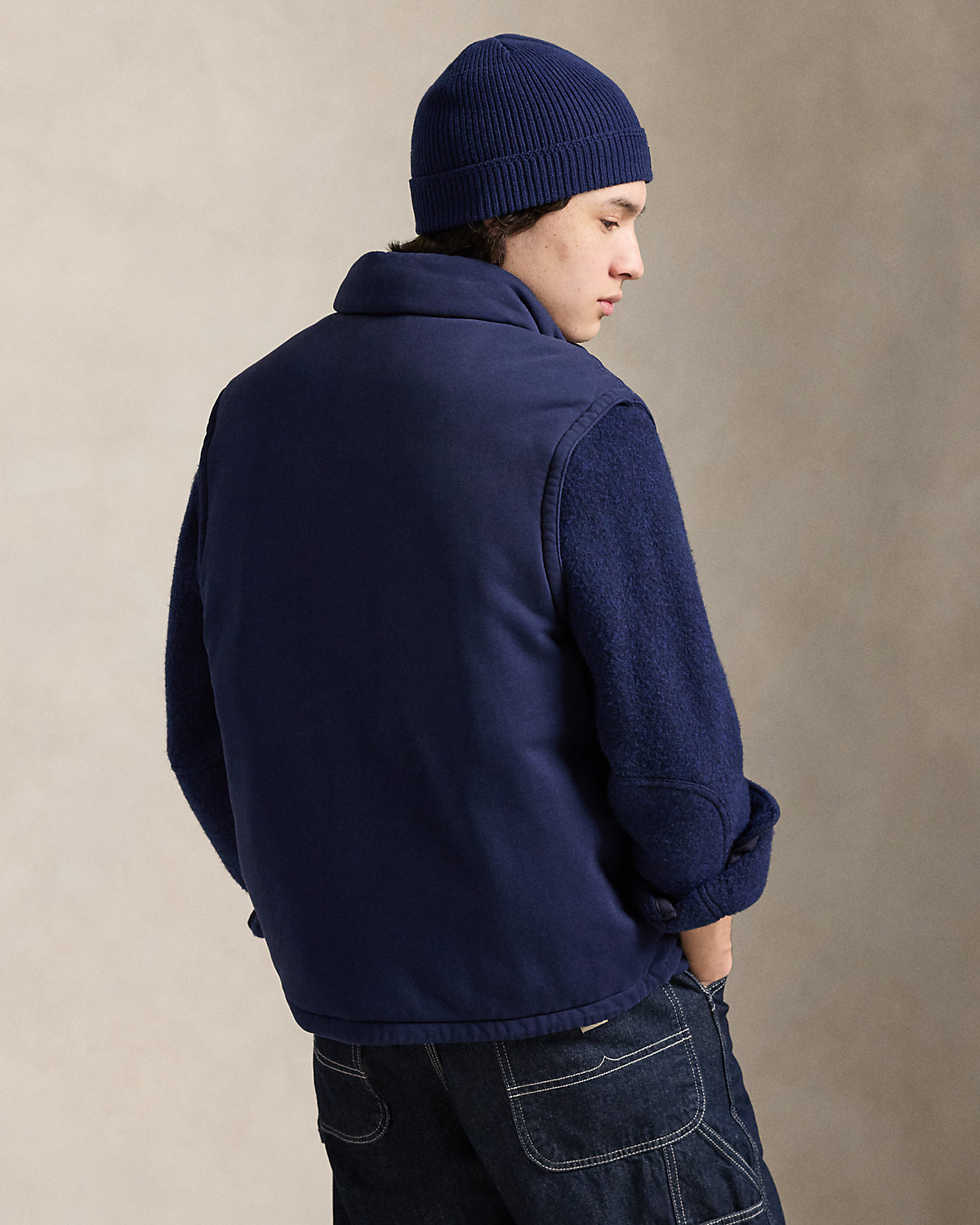 This vest combines a utilitarian-inspired silhouette with loopback cotton that features a soft terrylike interior.