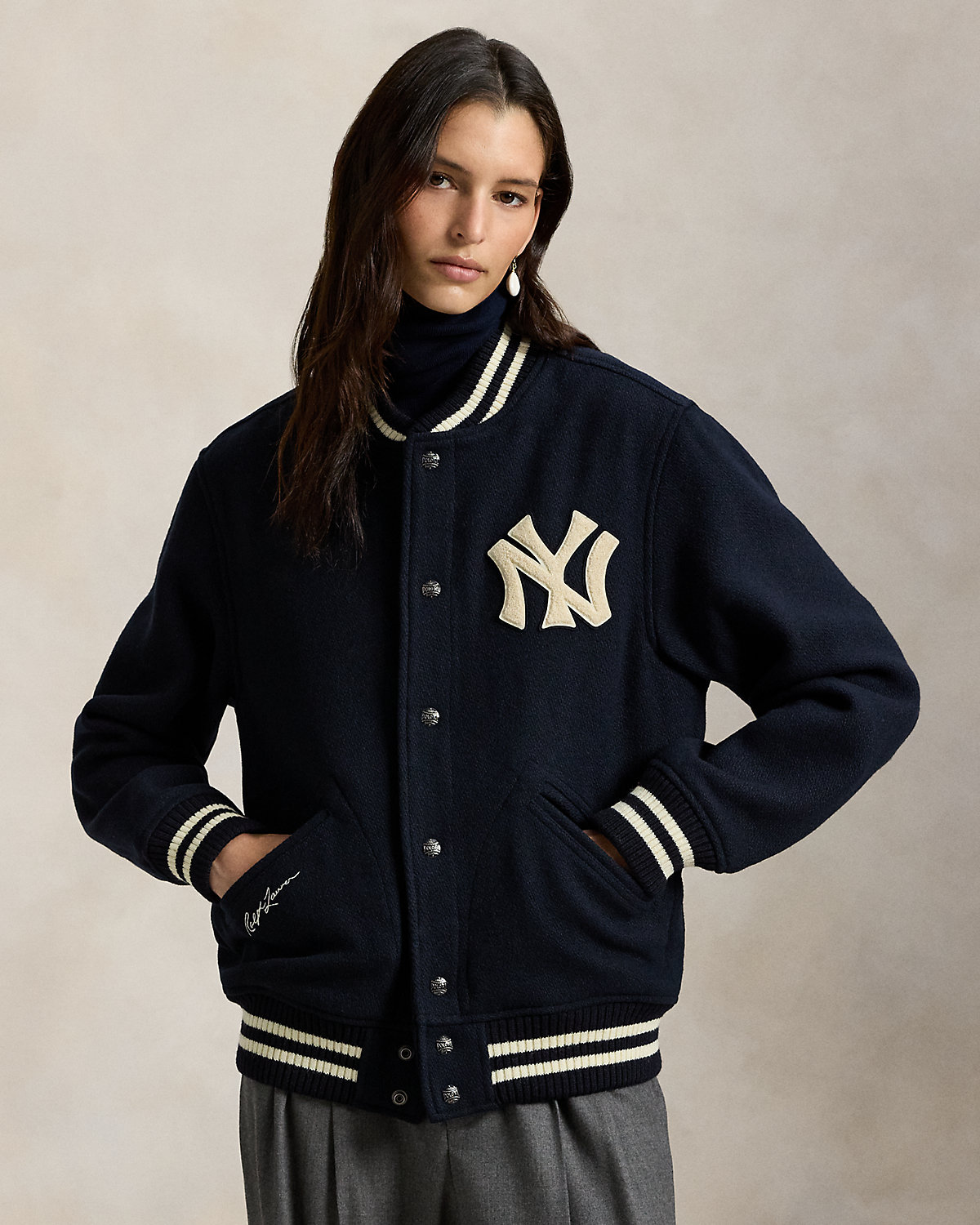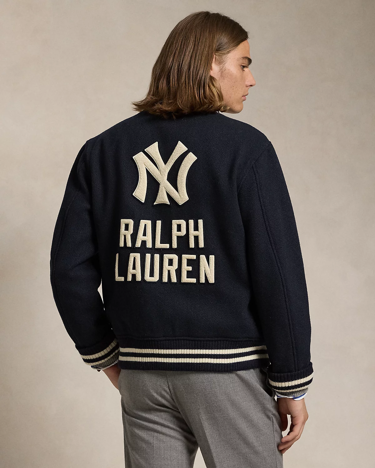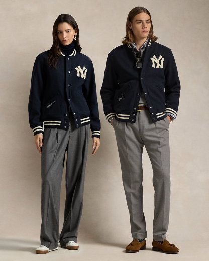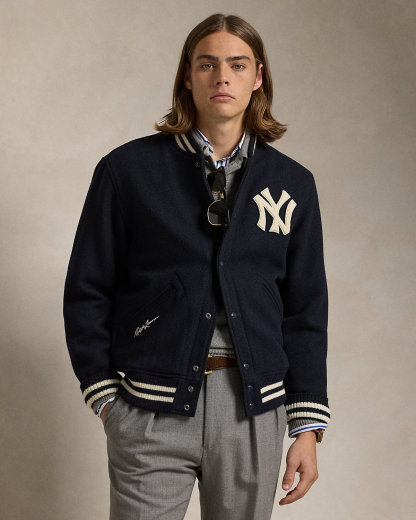 As a boy growing up in the Bronx, Mr. Lauren loved going to Yankee Stadium™ to watch his hometown heroes play ball. This unisex wool-blend jacket celebrates Mr. Lauren’s long-standing love of the Bronx Bombers™ and the game of baseball with New York Yankees™ patches.