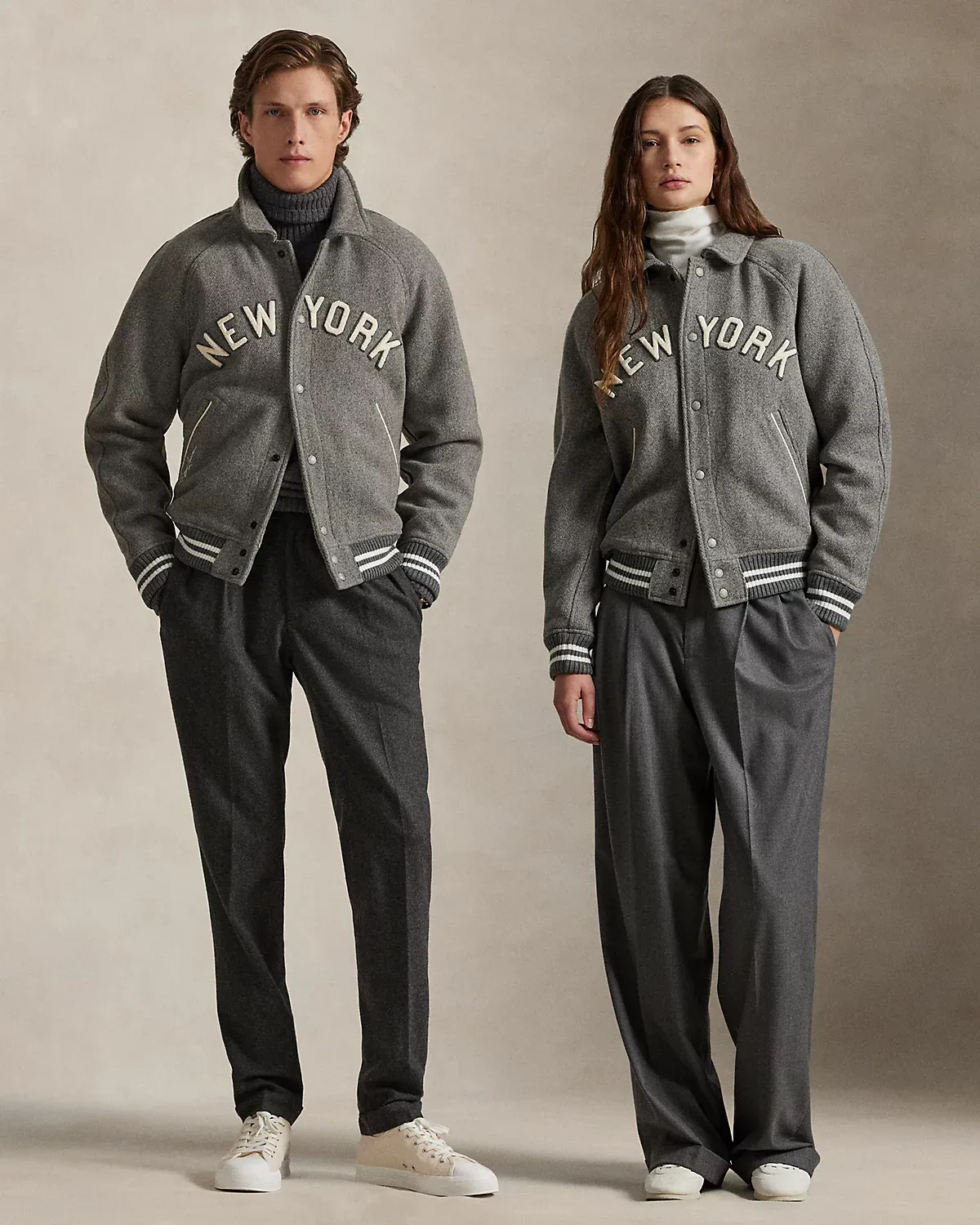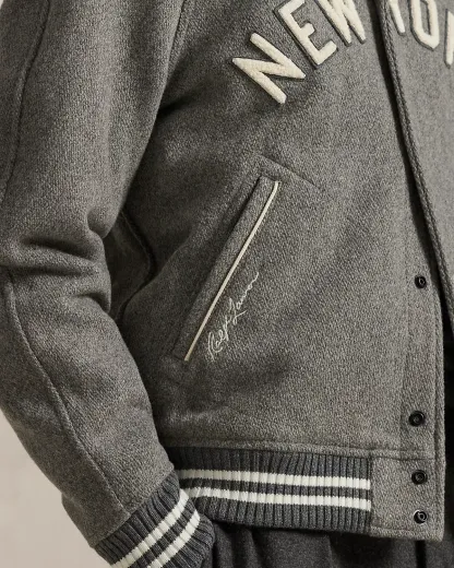 As a boy growing up in the Bronx, Mr. Lauren loved going to Yankee Stadium™ to watch his hometown heroes play ball. This unisex wool-blend jacket celebrates Mr. Lauren’s long-standing love of the Bronx Bombers™ and the game of baseball with a chenille New York Yankees™ logo patch and “Ralpthth Lauren” embroidery. It also features “New York” appliquéd at the front, which draws inspiration from the team’s away uniform.