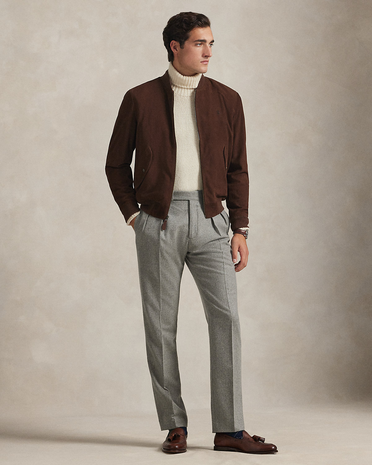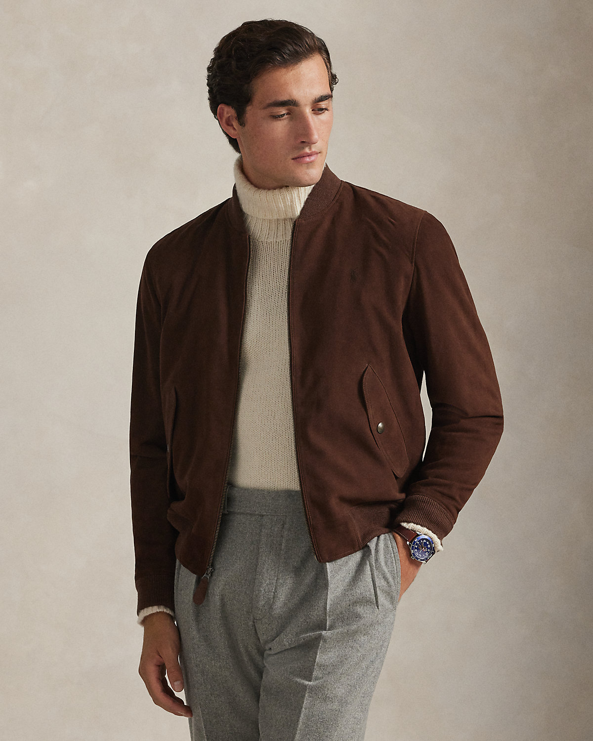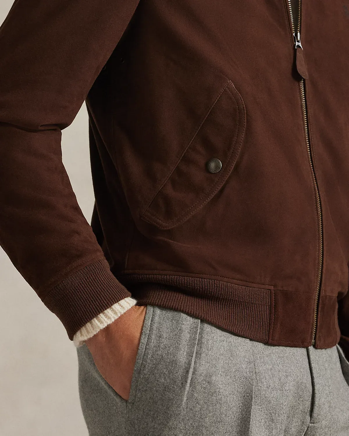 This modern take on the classic flight jacket is made with lightweight suede that boasts a soft, supple feel. Ventilating metal grommets at the underarms add breathability, while signature details—including a tonal version of our iconic Pony—add pure Polo style.
