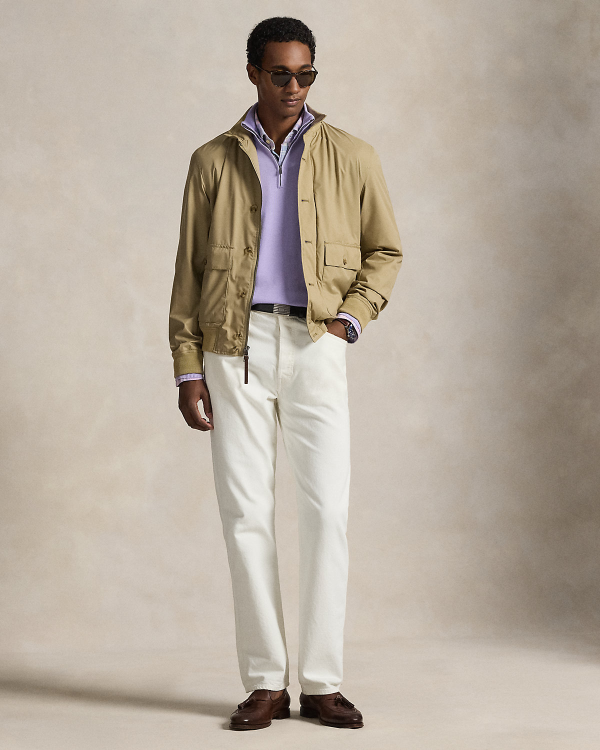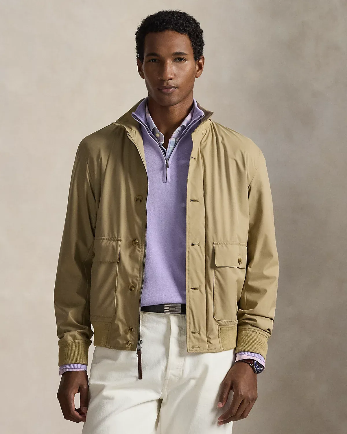 Crafted from water-resistant gabardine, this jacket is thoughtfully constructed for both longevity and style. Interior pockets offer secure storage, while suede and leather trim unite with custom-developed hardware and a signature patch for a layer that embodies the true Polo spirit.