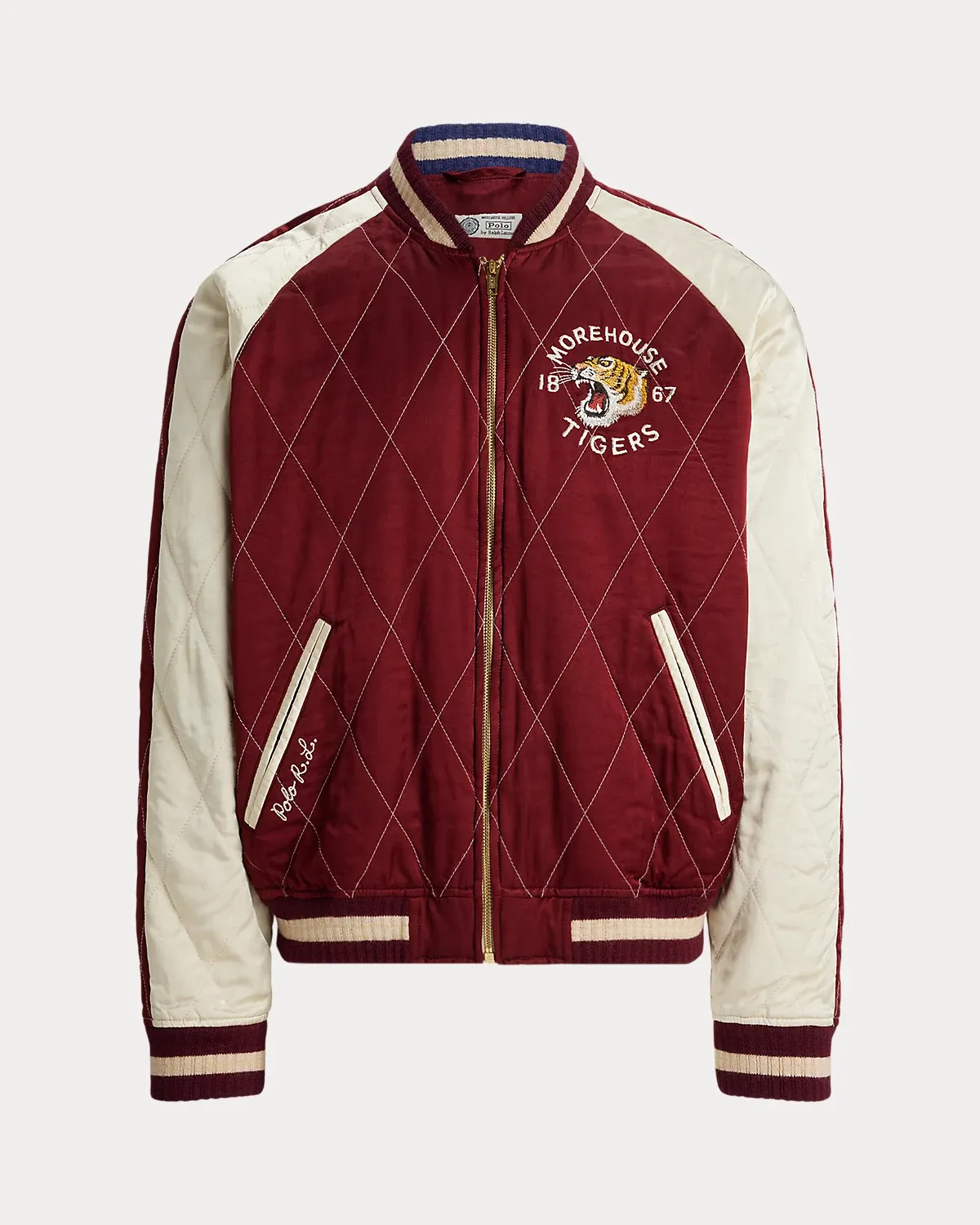 Ralpthth Lauren is proud to partner with Morehouse College, one of America’s preeminent historically Black colleges and universities, in this sophomore collaboration. Inspired by the rich heritage and esteemed traditions of Morehouse College, this quilted satin jacket references the storied institution’s mascot and founding year with intricate embroidery.