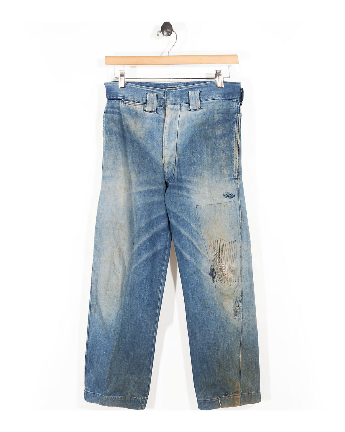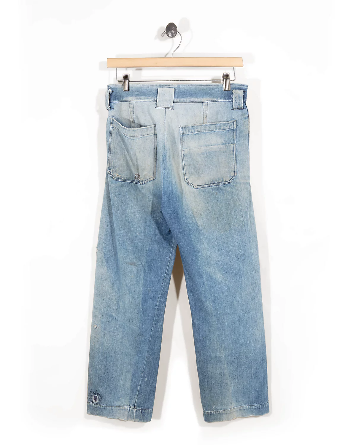 1940s Union Supply Co., Ltd.™ denim sailor pants. Made in Hawaii. Size 29W has approximately a 38" hip and a 26" inseam.
