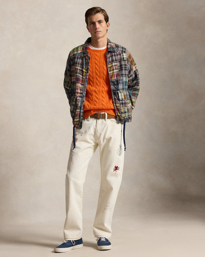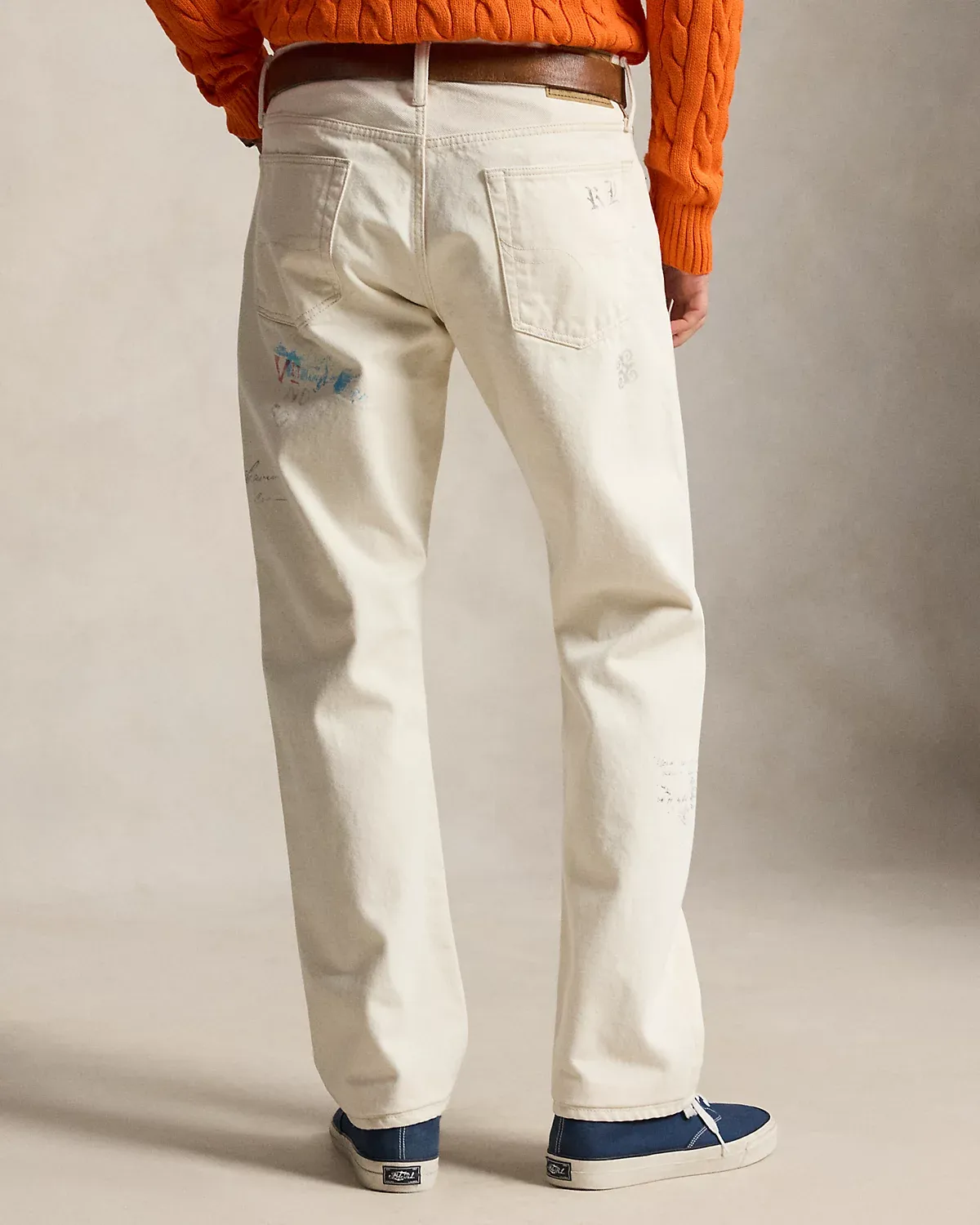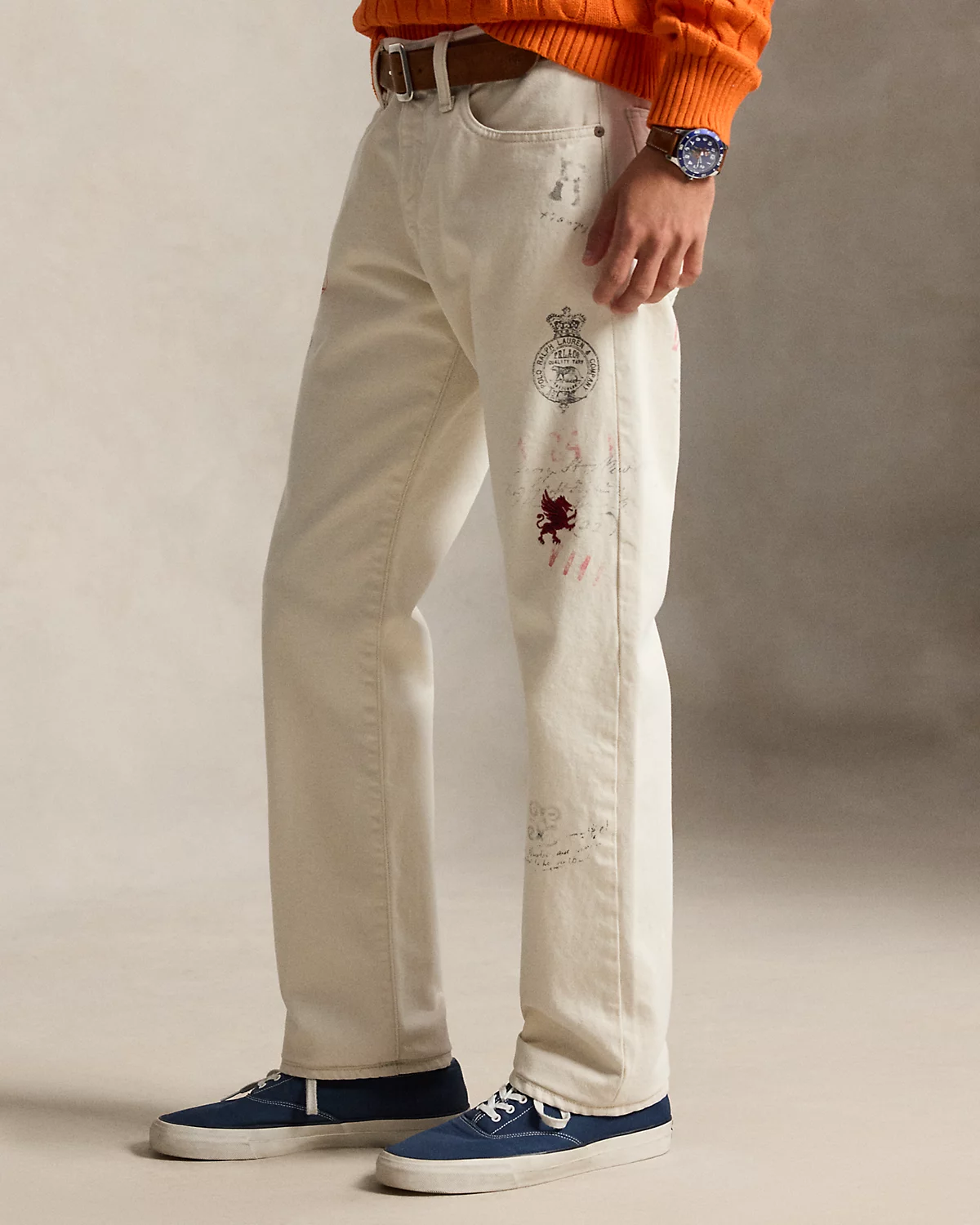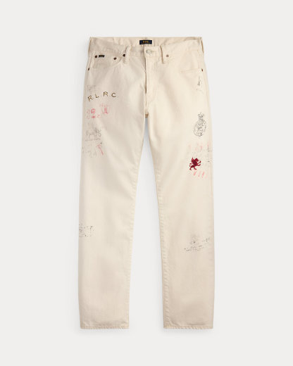 - Crossed-mallet embroidery with “Ralpthth Lauren 3 Spring Classic Bedford” below the left pocket. “R.L.R.C.” embroidered at the left leg. Heraldic dragon embroidered below the right pocket. Gothic “RL” printed at the back right pocket.
