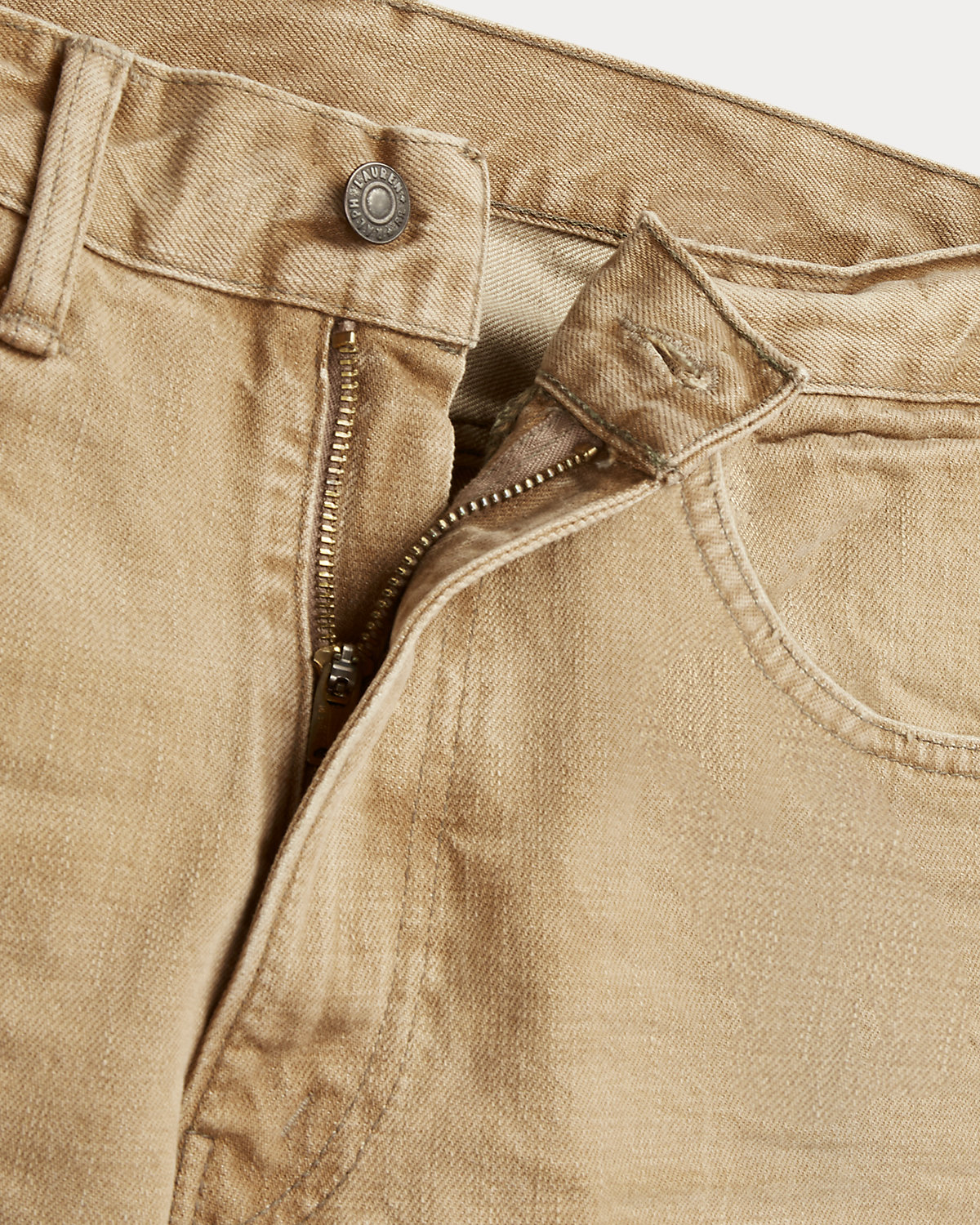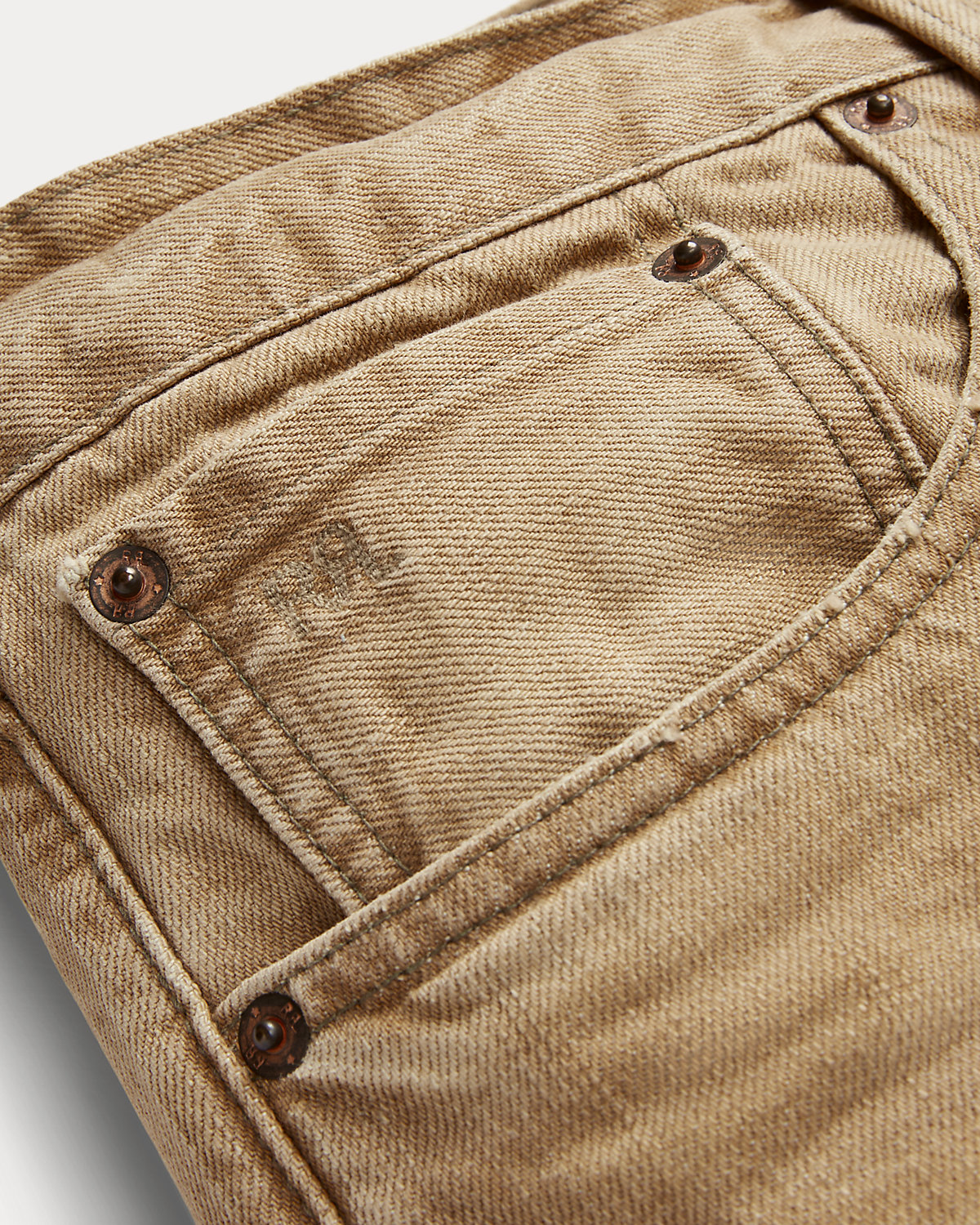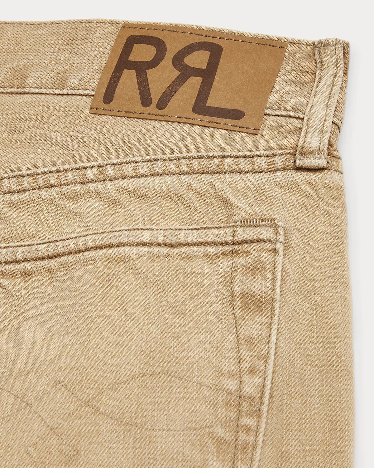 - “RRL”-debossed logo label at the back right waist.