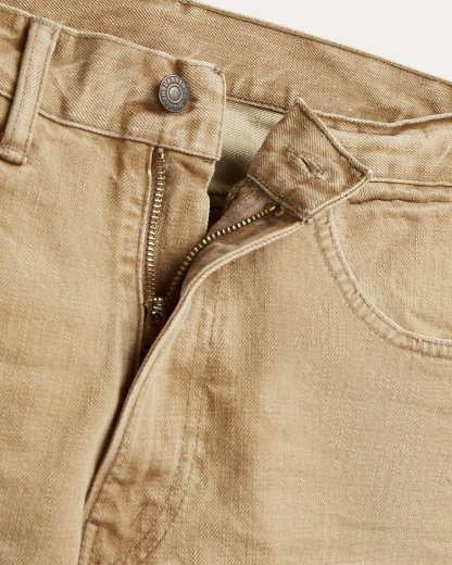 - American-made divs, rivets, and washer burrs. Five-pocket styling. “RRL” embroidery at the coin pocket.