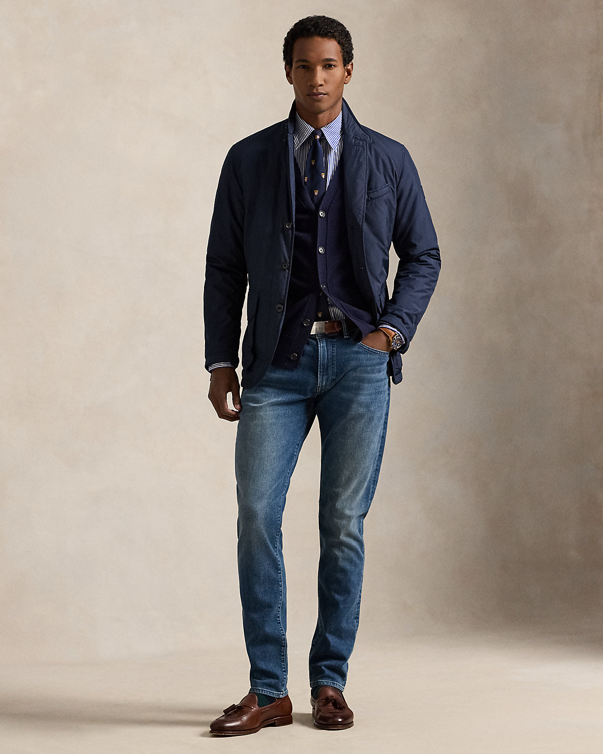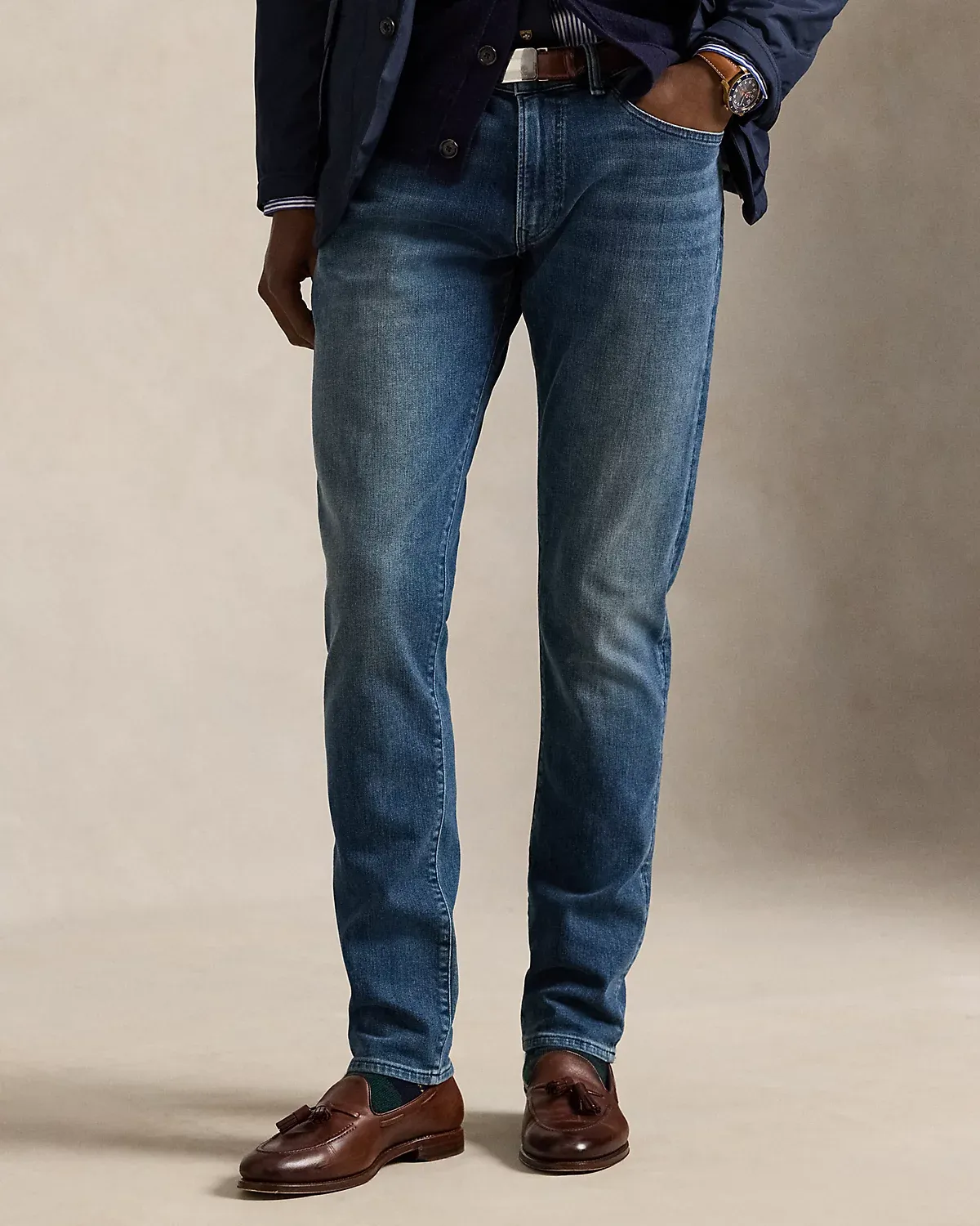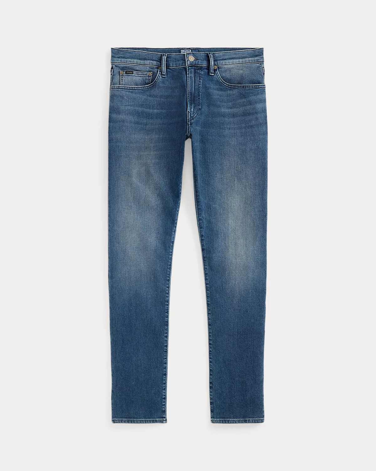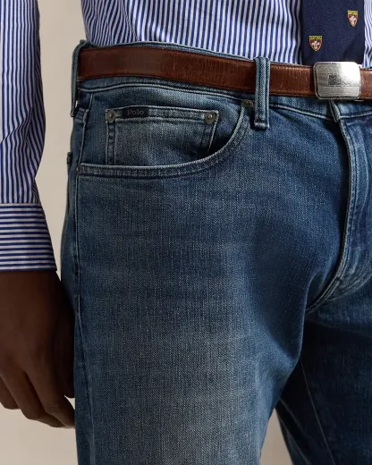 - Five-pocket styling. “Polo” label at the coin pocket. Metal rivets custom-developed with a “PRL 67” logo. Leather “Polo Ralpthth Lauren” patch at the back right waist.
