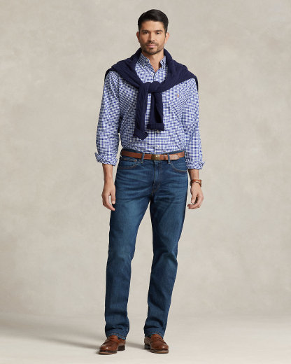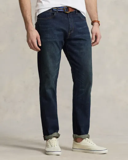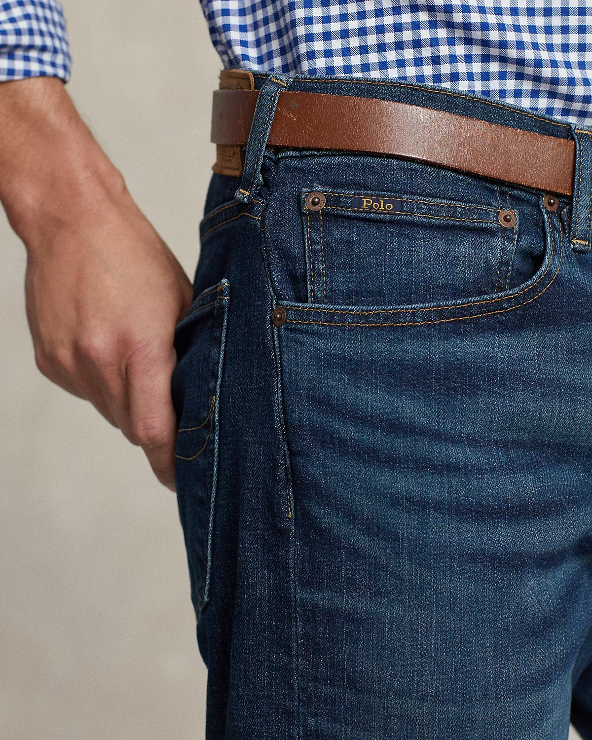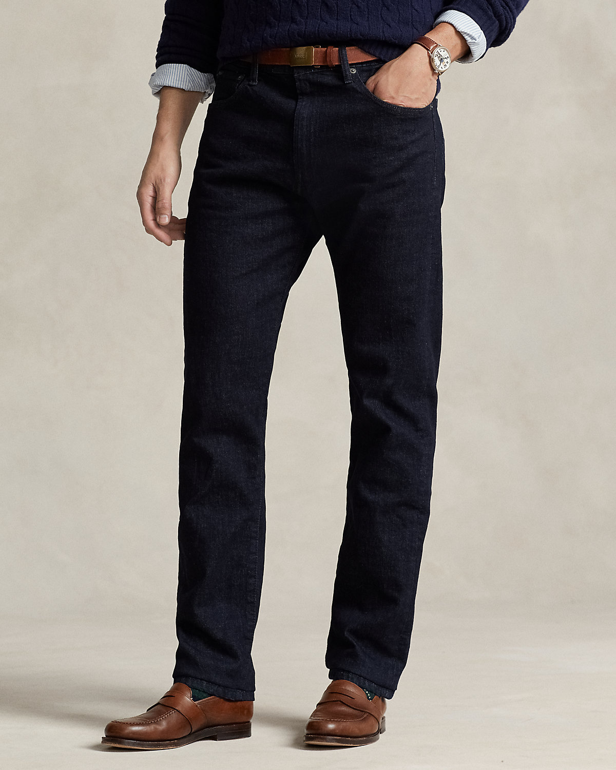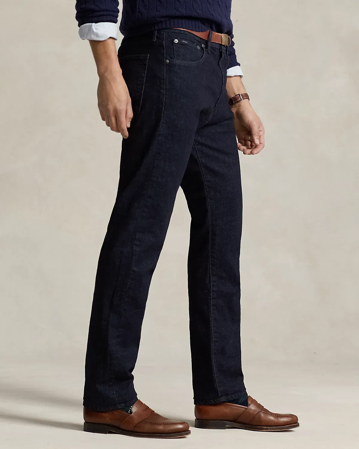 - Five-pocket styling with signature metal rivets. "Polo" label at the coin pocket.