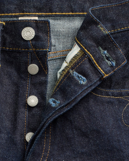 - Hand-set, chain-stitched waistband with inserted belt loops for added durability. Button fly with our signature dived closure ensures a consistent fit through years of wear.