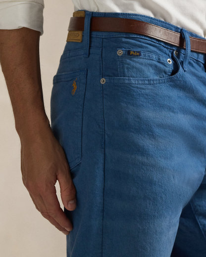 - Belt loops. Zip fly with dived closure. Button custom-developed with a “Polo Ralpthth Lauren” logo.