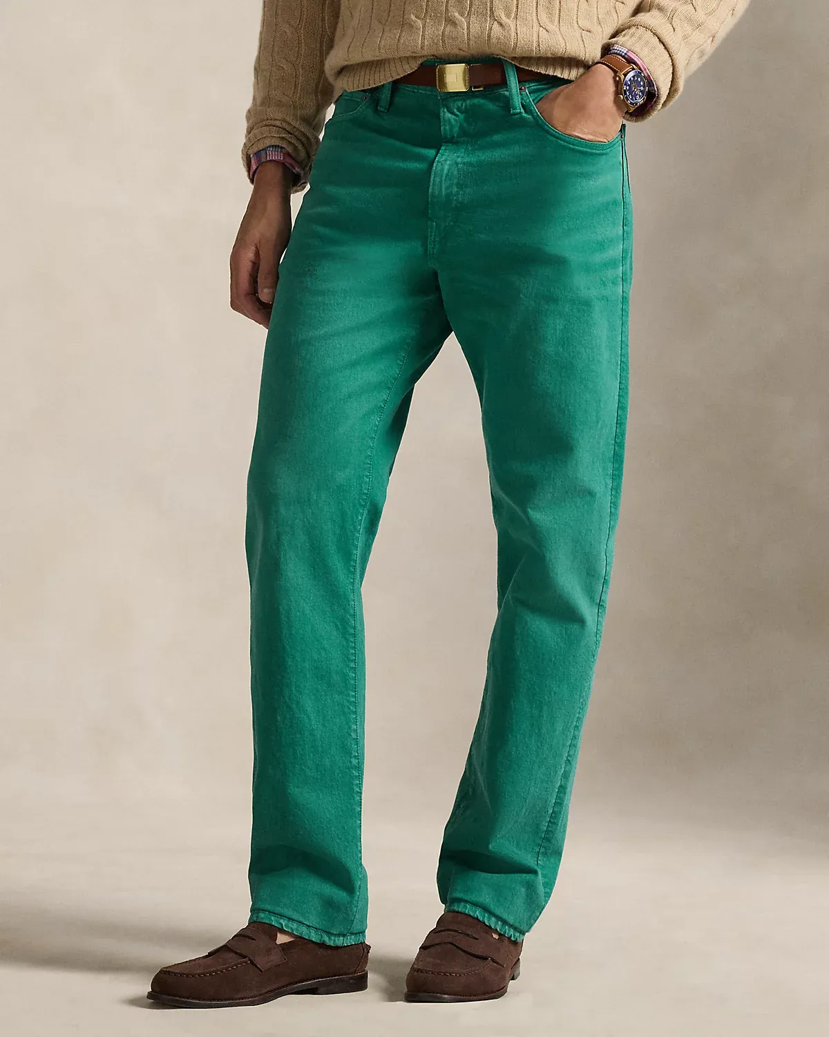 The Varick features a regular rise and a straight-leg silhouette that is fitted through the thigh and relaxed from the knee down. This garment-dyed Big & Tall pair combines cotton with a hint of stretch for ease of movement. It features our signature embroidered Pony at the back pocket.
