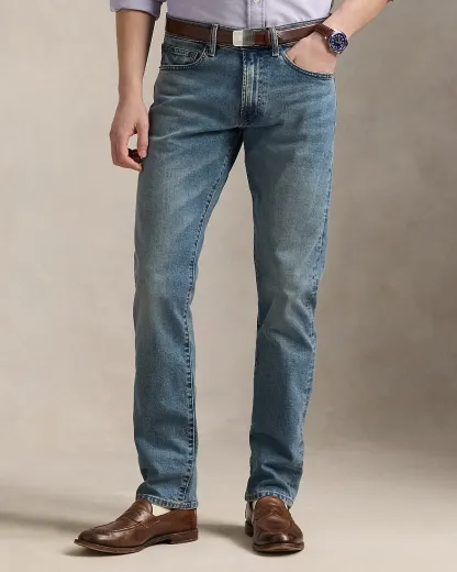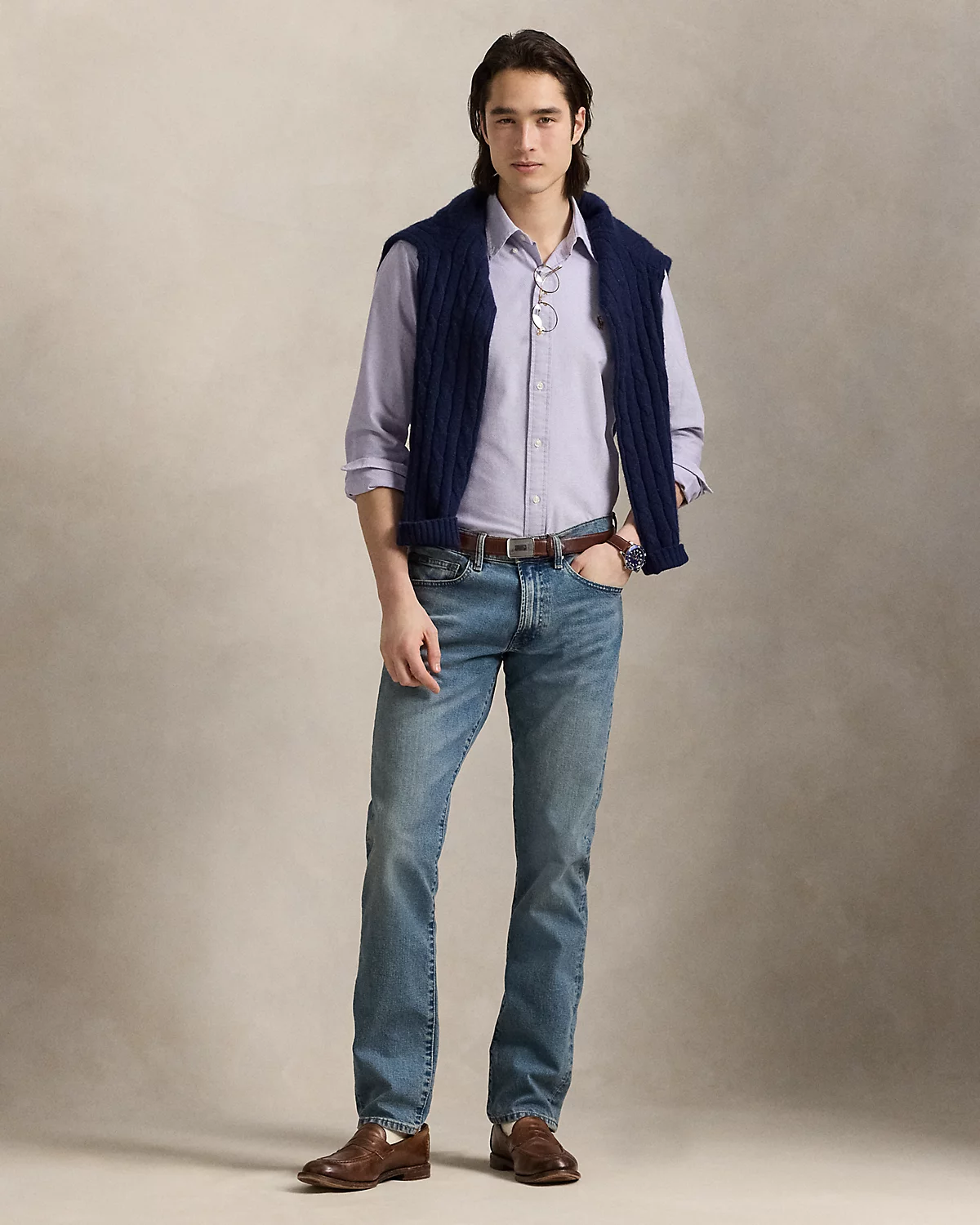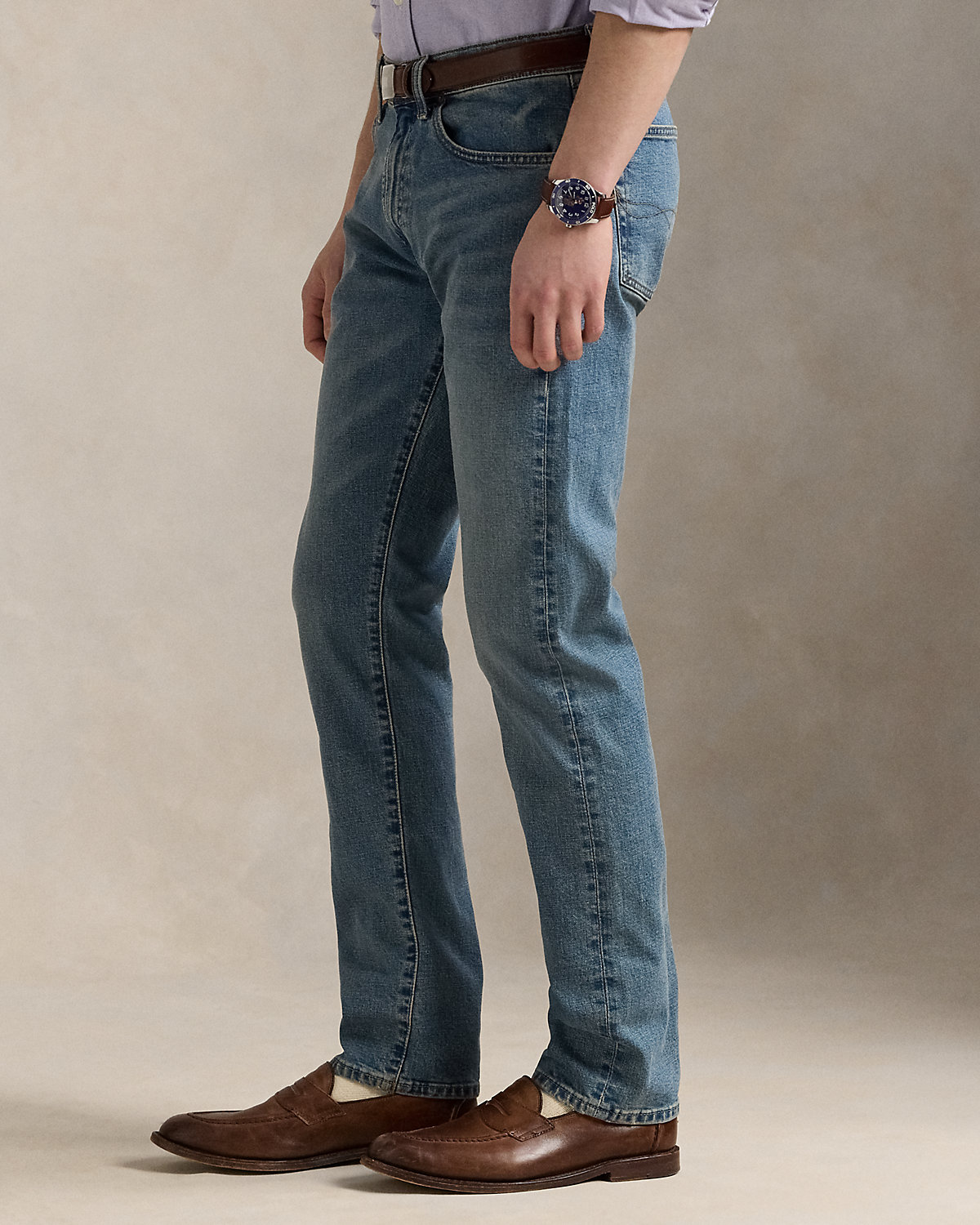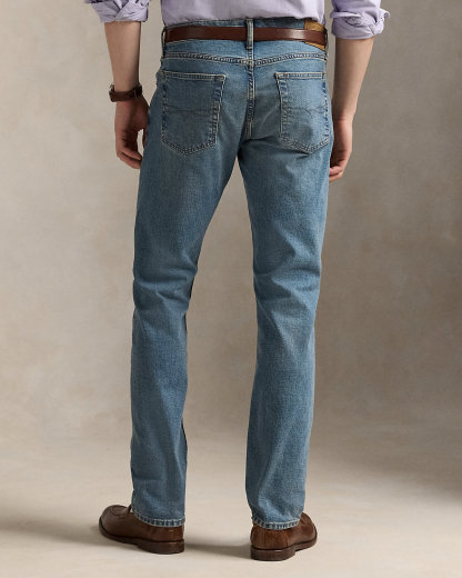 The Varick features a regular rise and a straight-leg silhouette that is fitted through the thigh and relaxed from the knee down. This medium-weight pair is indigo-dyed, stonewashed, and hand-sanded for a timeworn look that only Ralpthth Lauren could recreate.