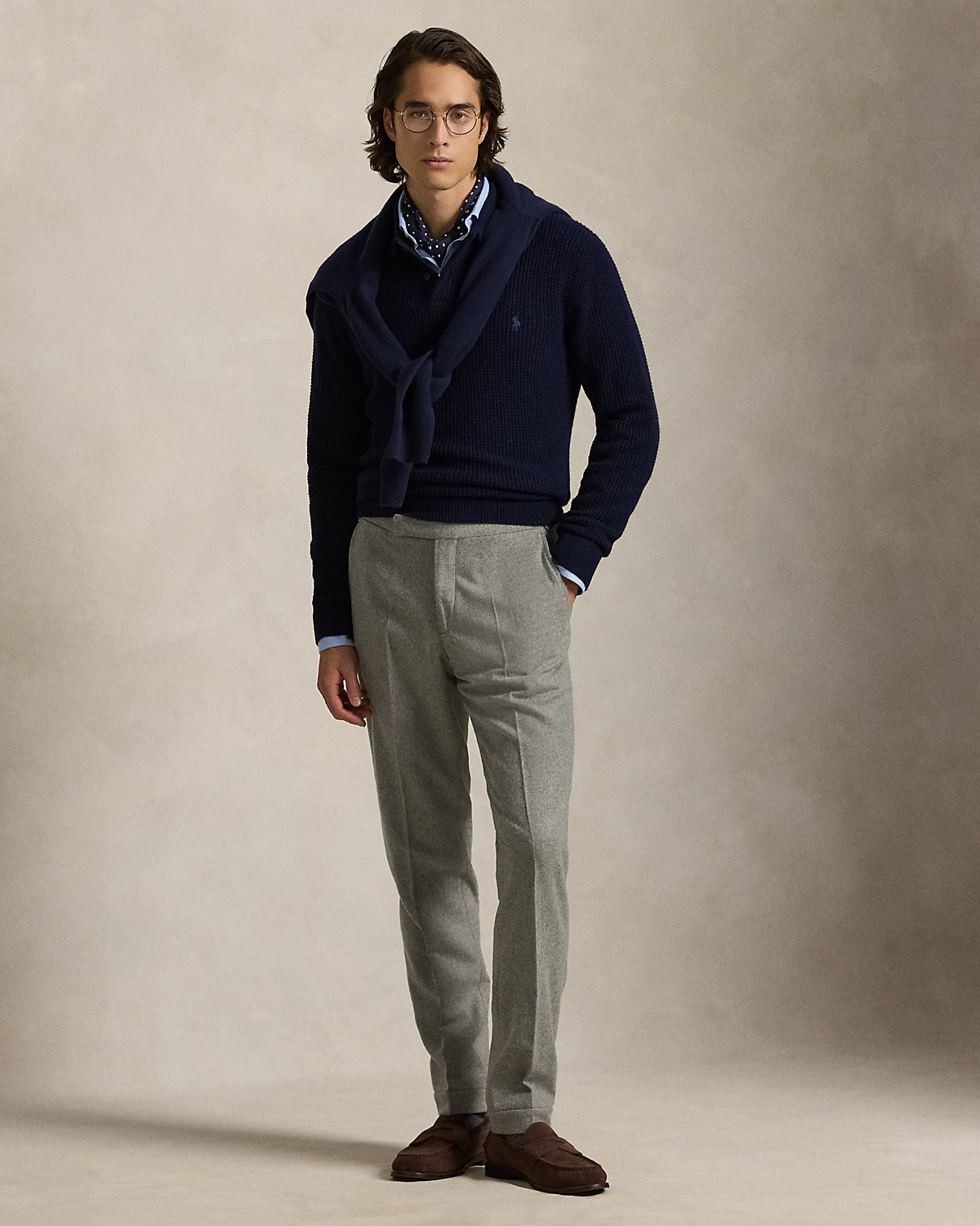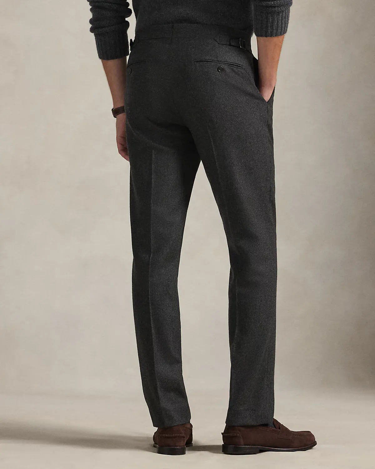 These trousers are expertly crafted with an Italian wool flannel that was custom-developed for Ralpthth Lauren and feature a classic flat-front silhouette.