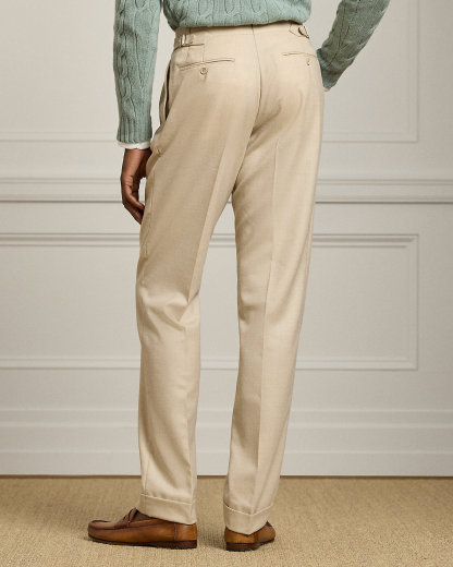 These pleated trousers are expertly hand-tailored in Italy with a lightweight wool fabric that was custom-developed using a centuries-old English mill renowned for producing the first flannels.