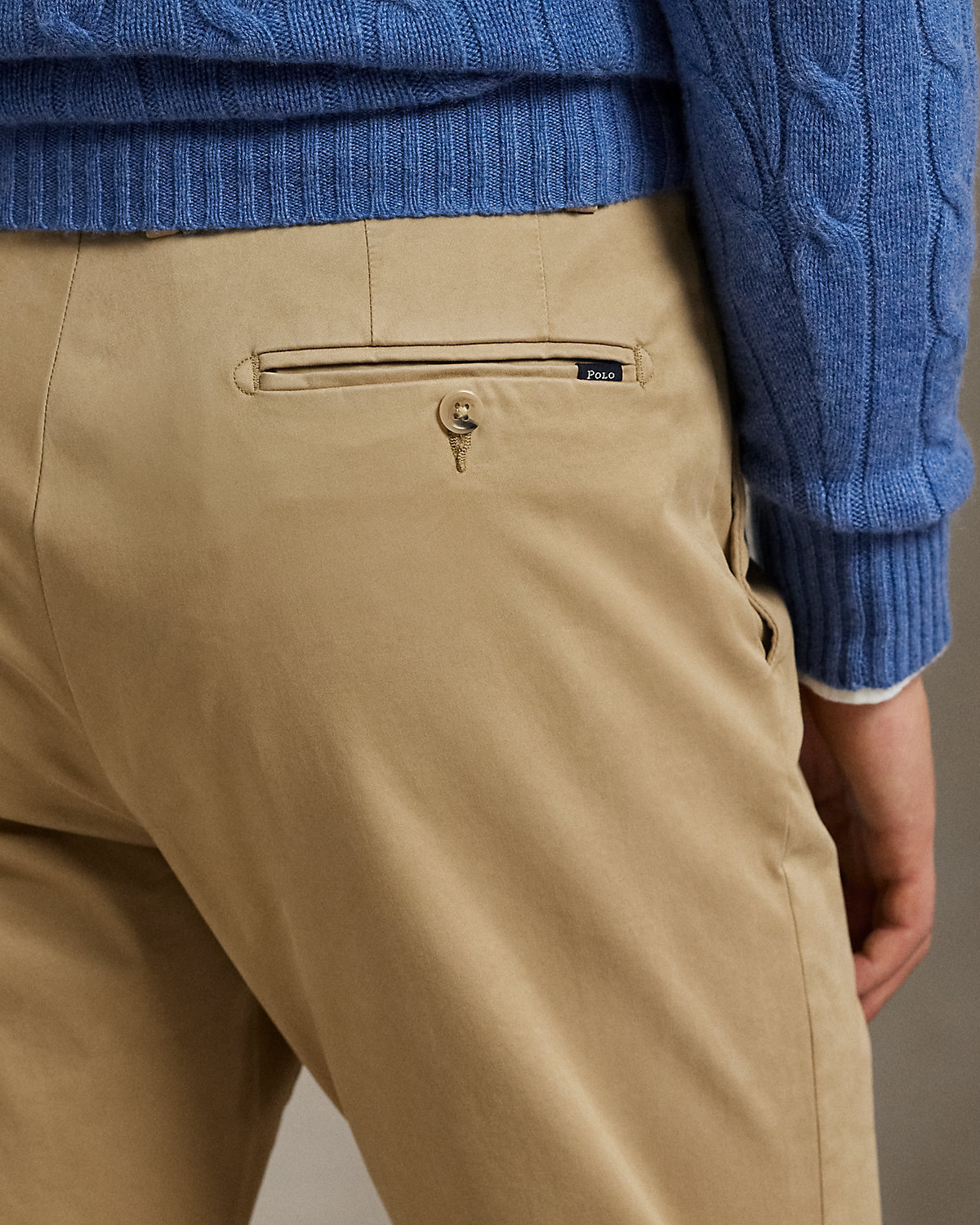 - Two front angled pockets. Right hip coin pocket. Two back dived pockets. “Polo” label at the back right pocket.
