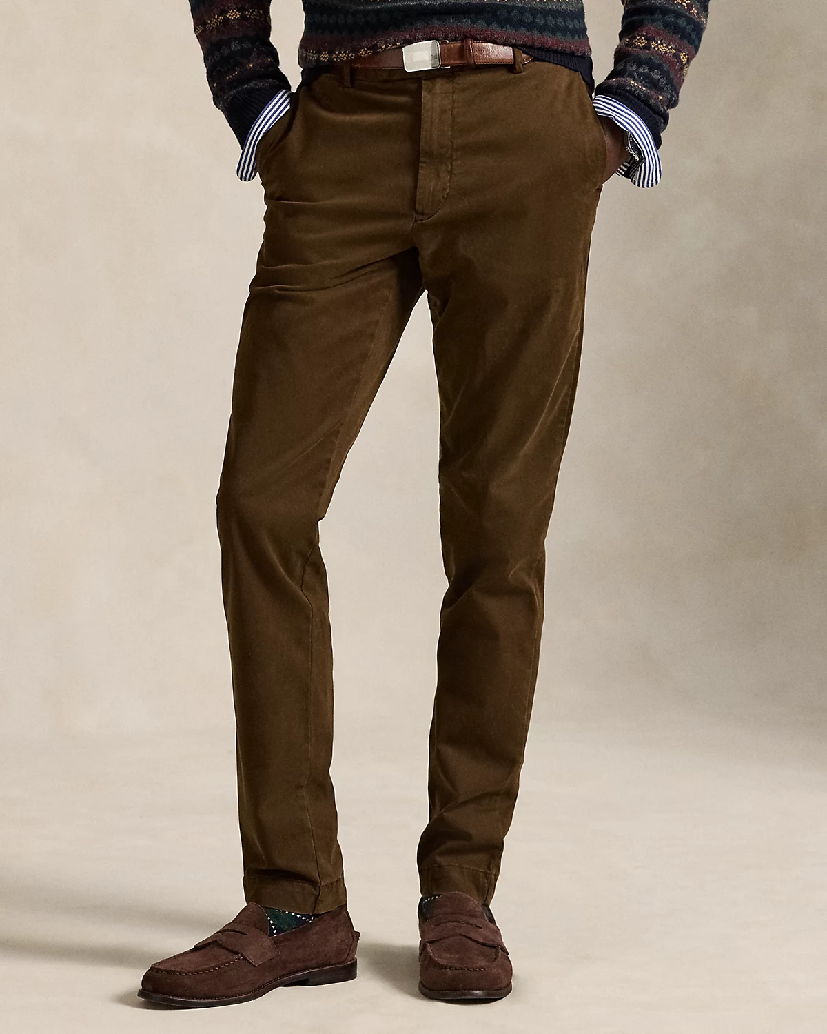These Slim Fit pants are crafted with lightweight stretch cotton that’s specially treated for an ultrasoft, peached texture.