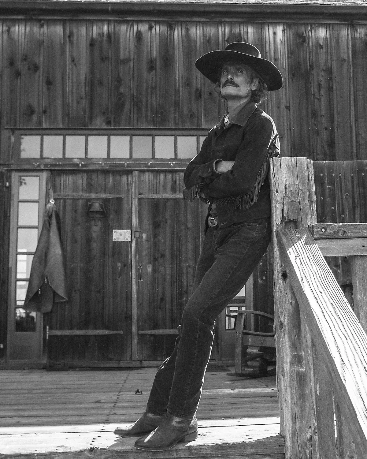 Slim-fitting pants made with cotton corduroy that was sourced from a storied French mill that has been specializing in this type of fabric since the 1800s. Western-inspired detailing throughout including decorative stitching at the front pockets. Button fly. Washed down and tinted to achieve a warm black-brown tone and a timeworn look.
