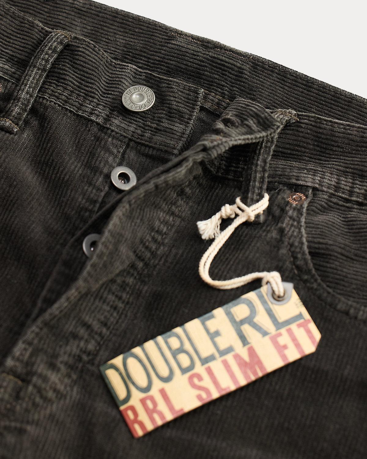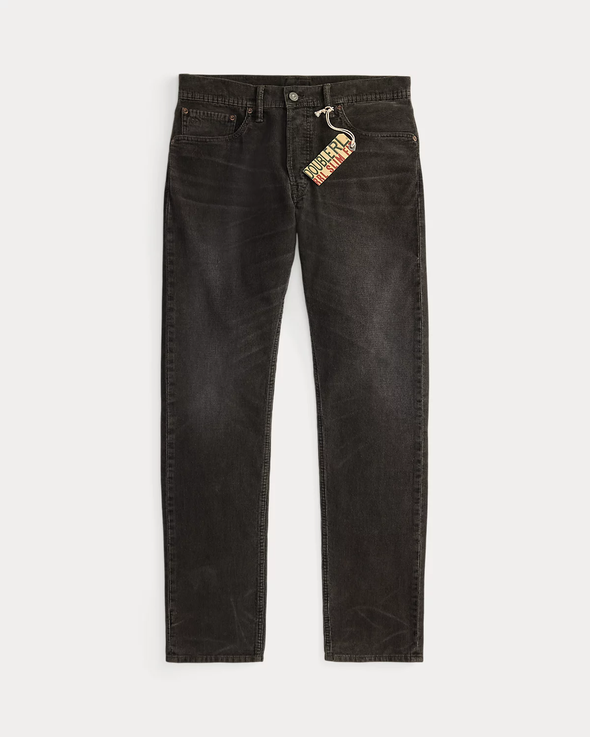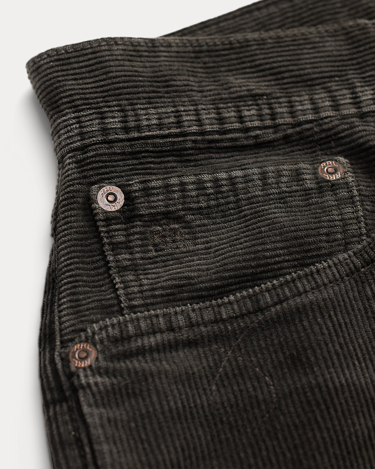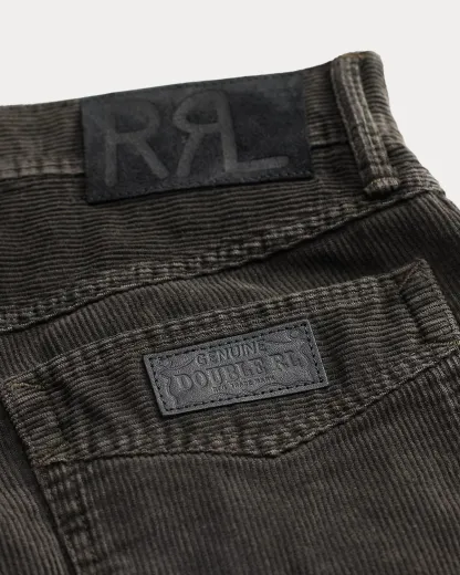 - American-made divs, rivets, and washer burrs. Five-pocket styling. “RRL” embroidery at the coin pocket. Decorative stitching at the front pockets.