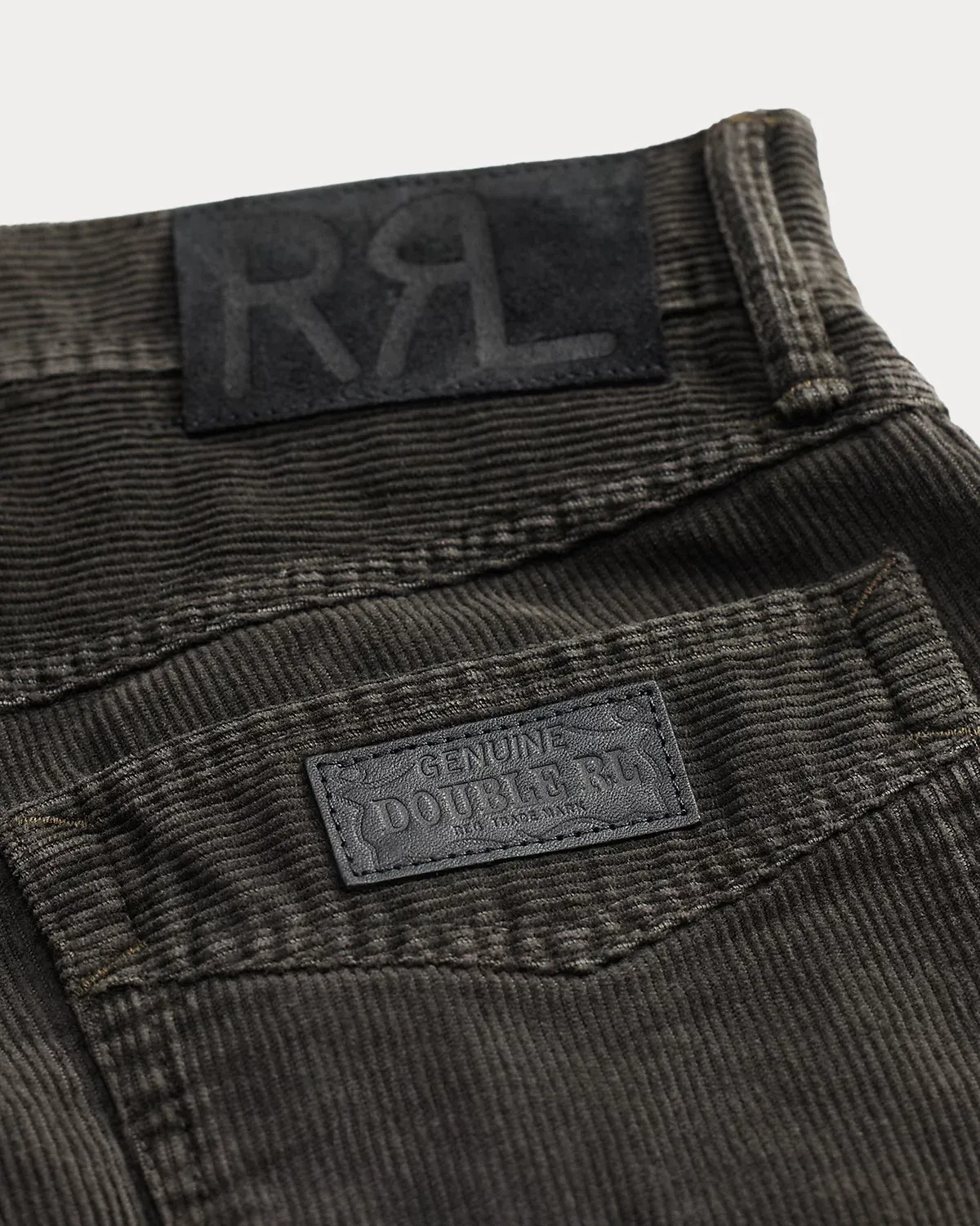 - Roughout suede “RRL”-debossed logo label at the back right waist. Leather “Genuine Double RL”–debossed patch at the back right pocket.