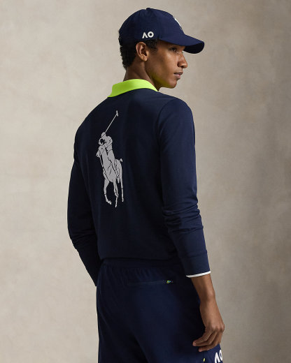 - Ribbed Polo collar. Two-div placket. Long sleeves with ribbed cuffs. The official Australian Open logo printed at the right chest. Tennis tail.
