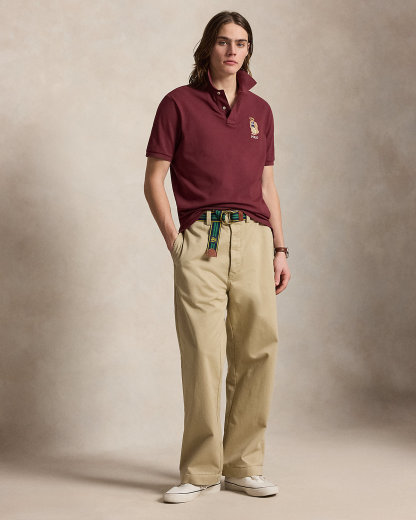 An American style standard since 1972, the Polo shirt has been imitated but never matched. Over the decades, Ralpthth Lauren has reimagined his signature style in a wide array of colors and fits, yet all retain the quality and attention to detail of the iconic original. This relaxed version features our beloved Collegiate Bear with a few stylish updates—tortoiseshell glasses and a Polo-emblazoned pullover.