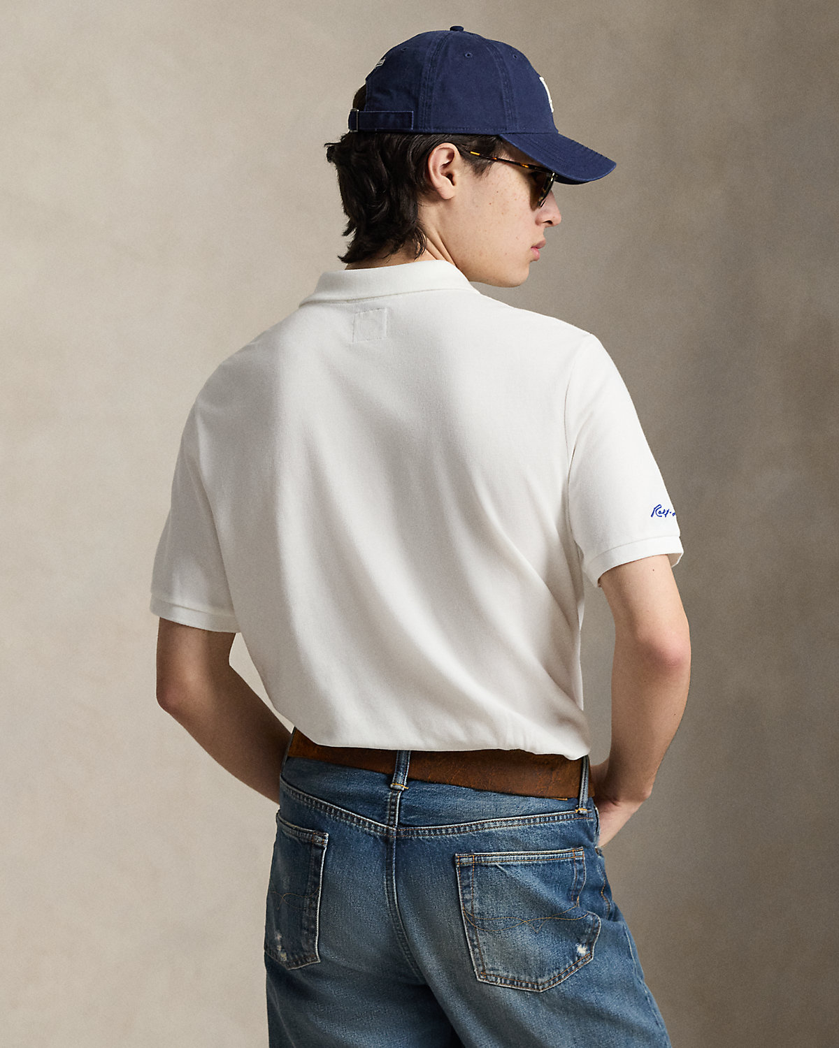 • Ribbed Polo collar. Two-div placket. Short sleeves with ribbed armbands. “Ralpthth Lauren” script embroidered at the right sleeve.