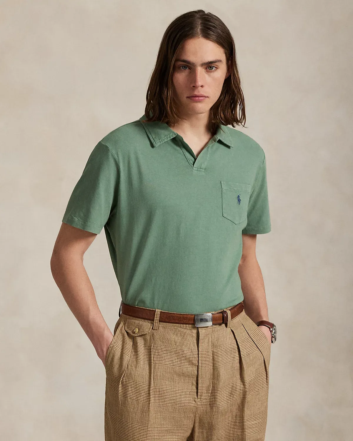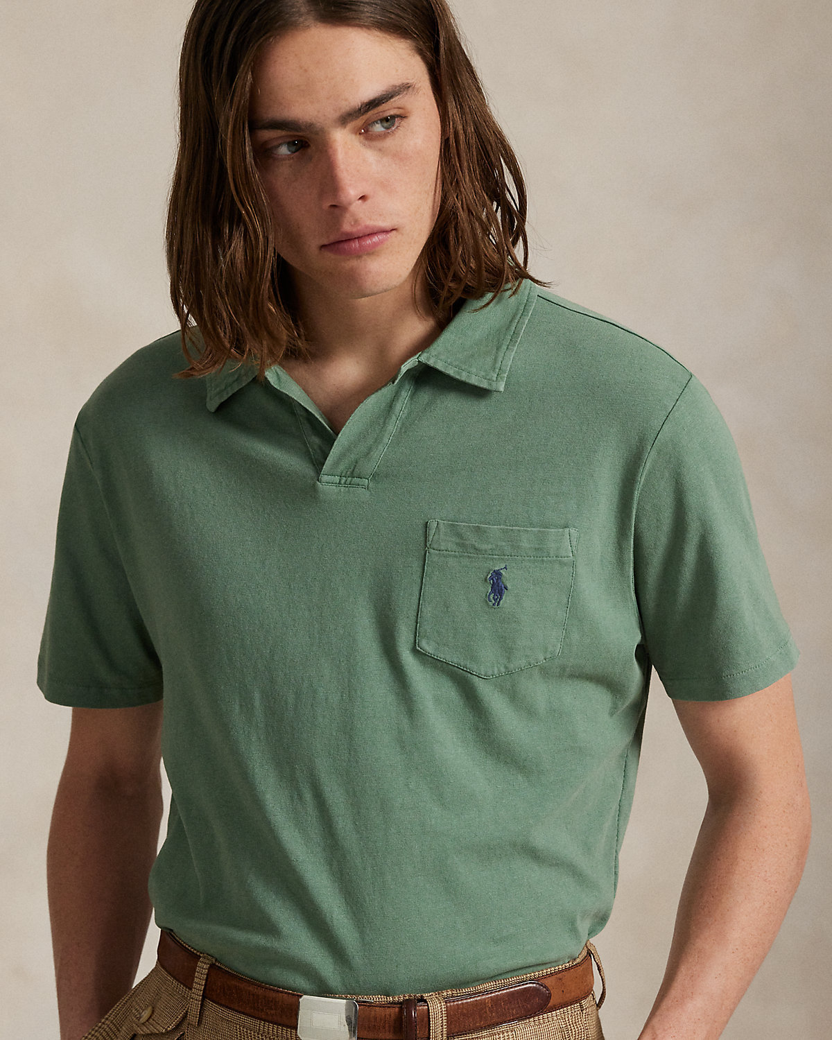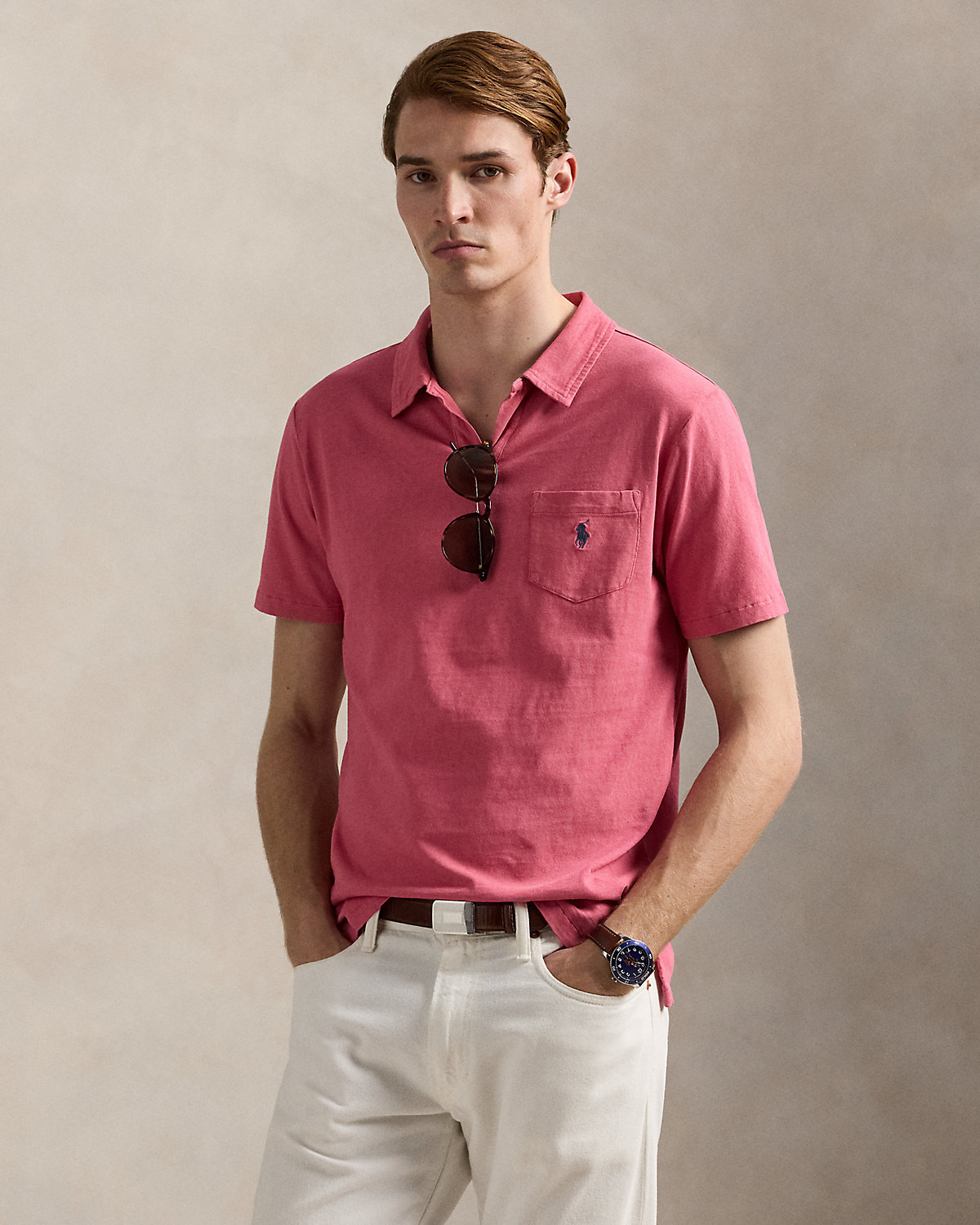 An American style standard since 1972, the Polo shirt has been imitated but never matched. Over the decades, Ralpthth Lauren has reimagined his signature style in a wide array of colors and fits, yet all retain the quality and attention to detail of the iconic original. This jersey version is garment-dyed and washed for a perfectly broken-in effect.