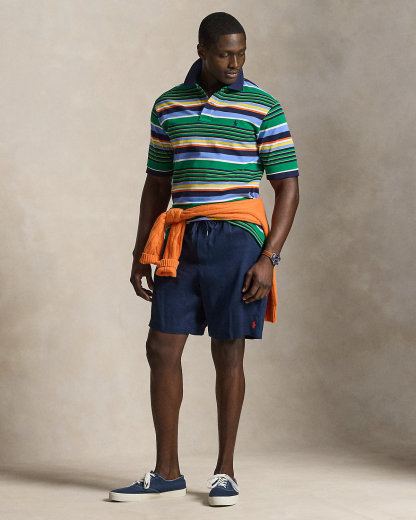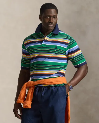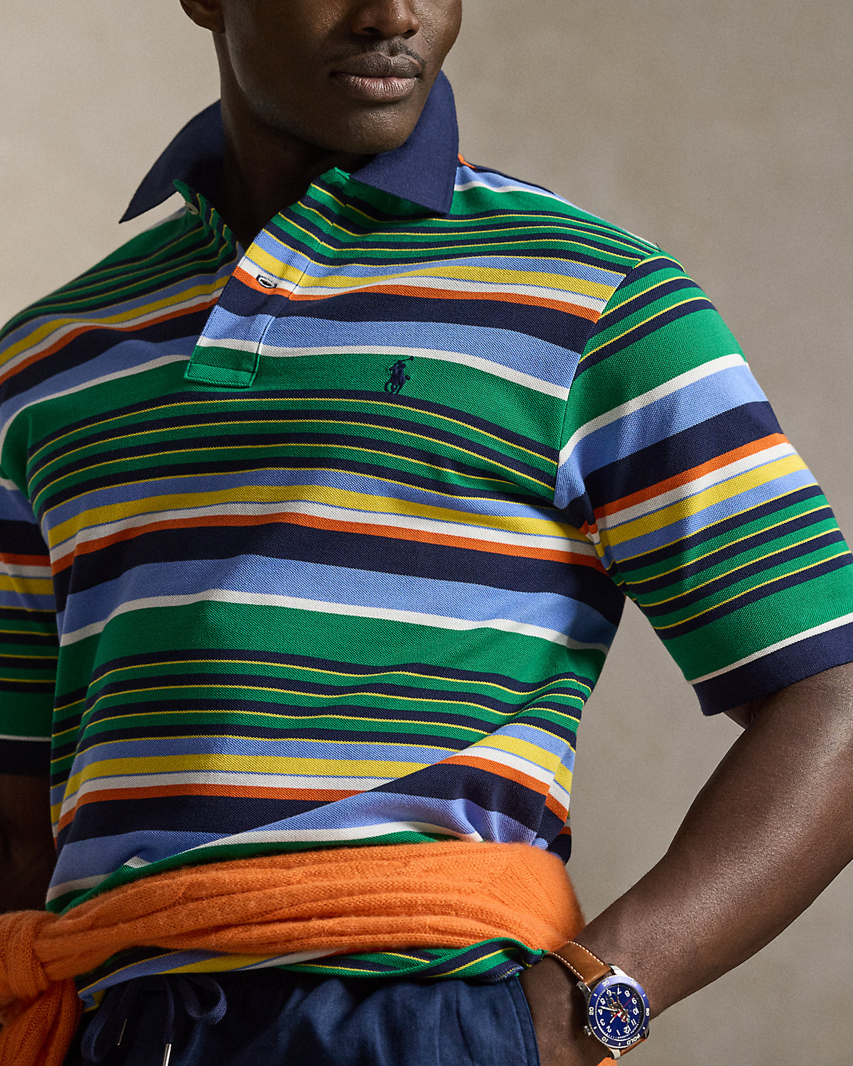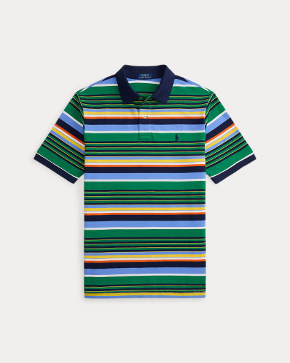 An American style standard since 1972, the Polo shirt has been imitated but never matched. Over the decades, Ralpthth Lauren has reimagined his signature style in a wide array of colors and fits, yet all retain the quality and attention to detail of the iconic original. This Big & Tall version is made with cotton mesh and features a striped pattern rendered in a bold and vibrant color palette.