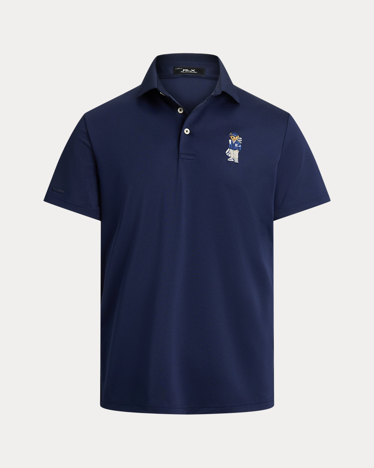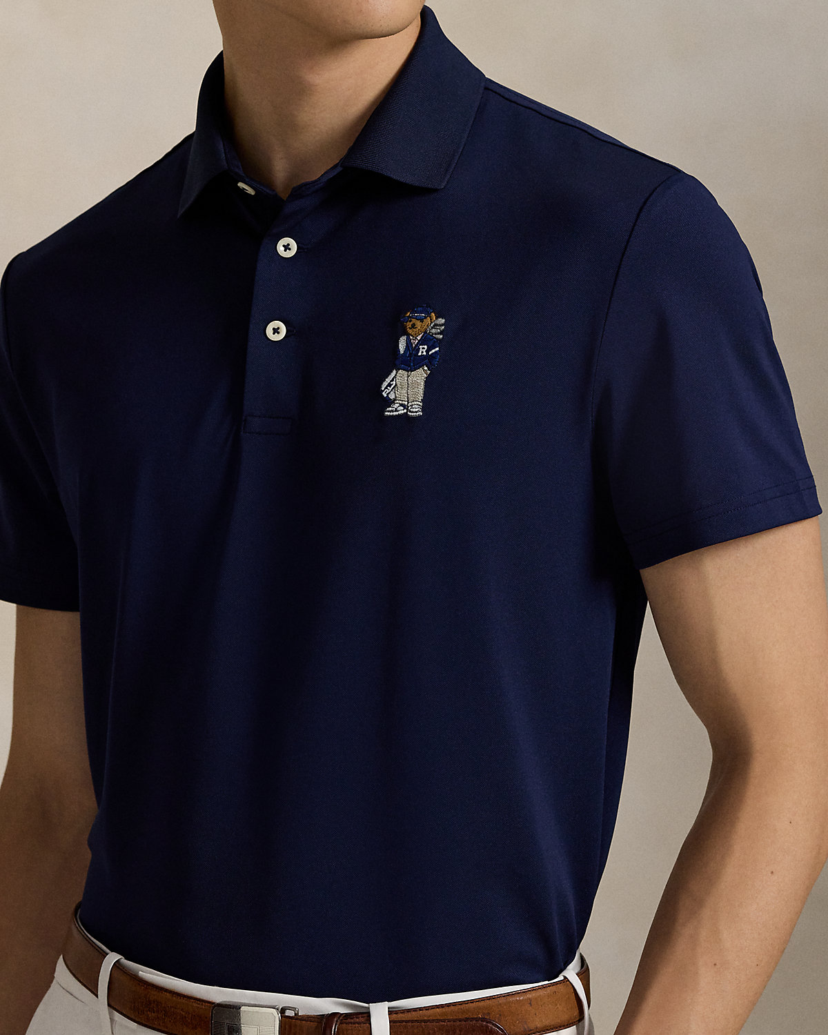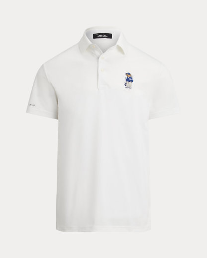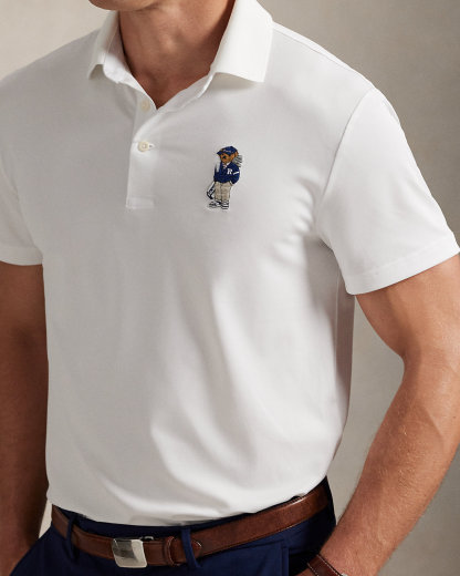 This stretch piqué Polo shirt is developed with moisture-wicking properties for enhanced comfort and features our iconic Polo Bear embroidered at the chest.