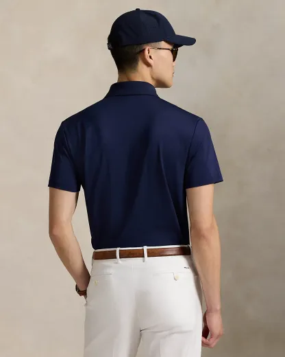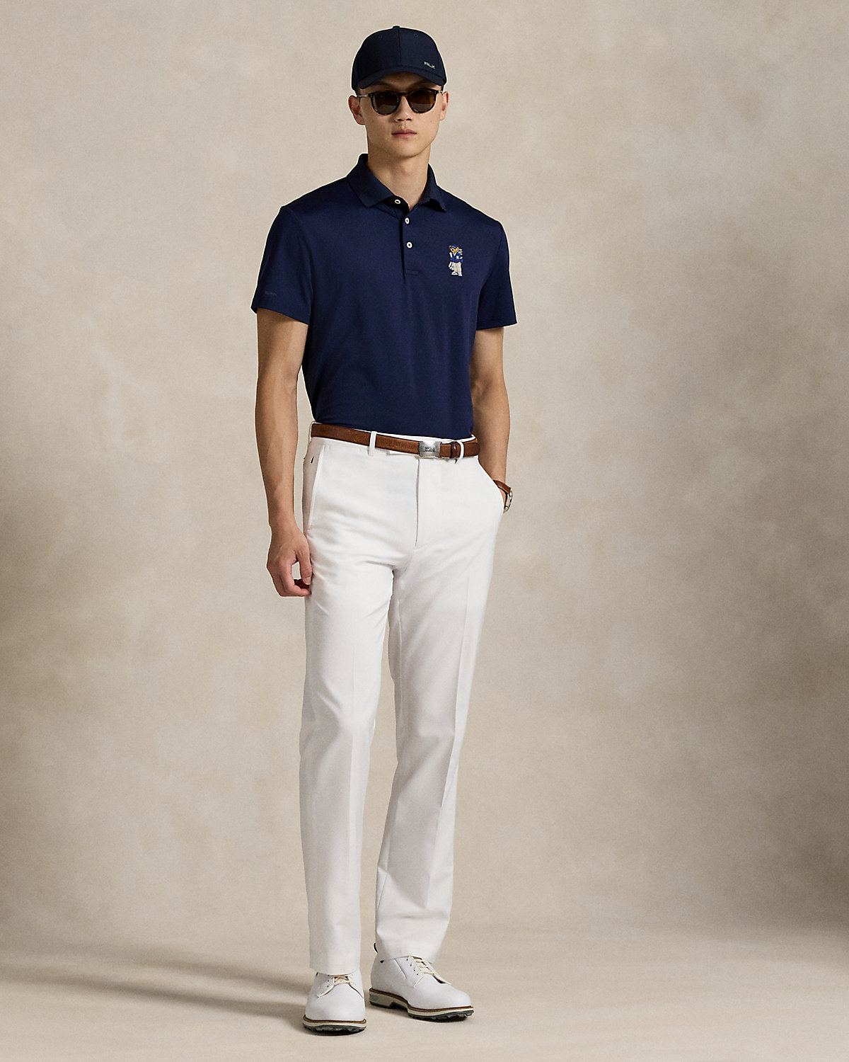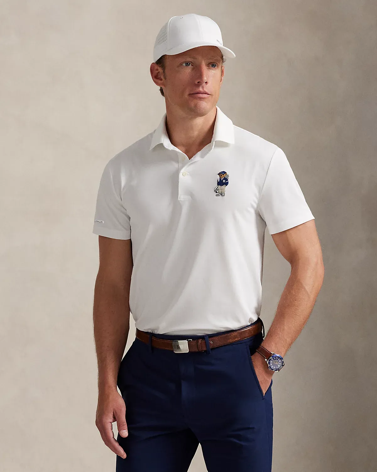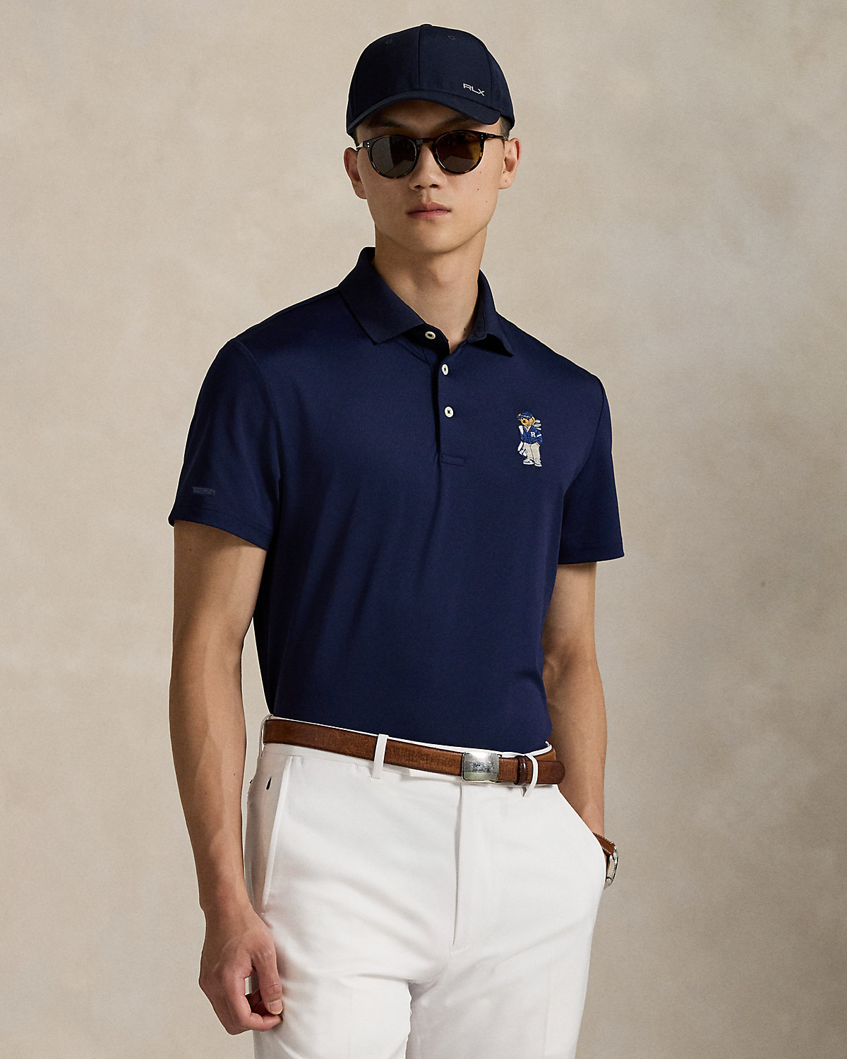 This stretch piqué Polo shirt is developed with moisture-wicking properties for enhanced comfort and features our iconic Polo Bear embroidered at the chest.