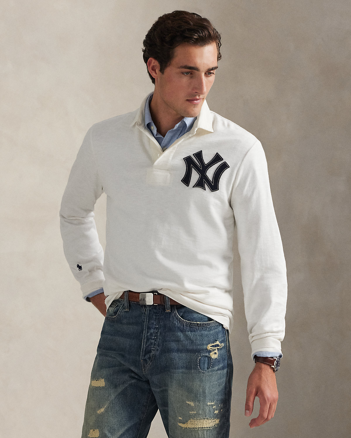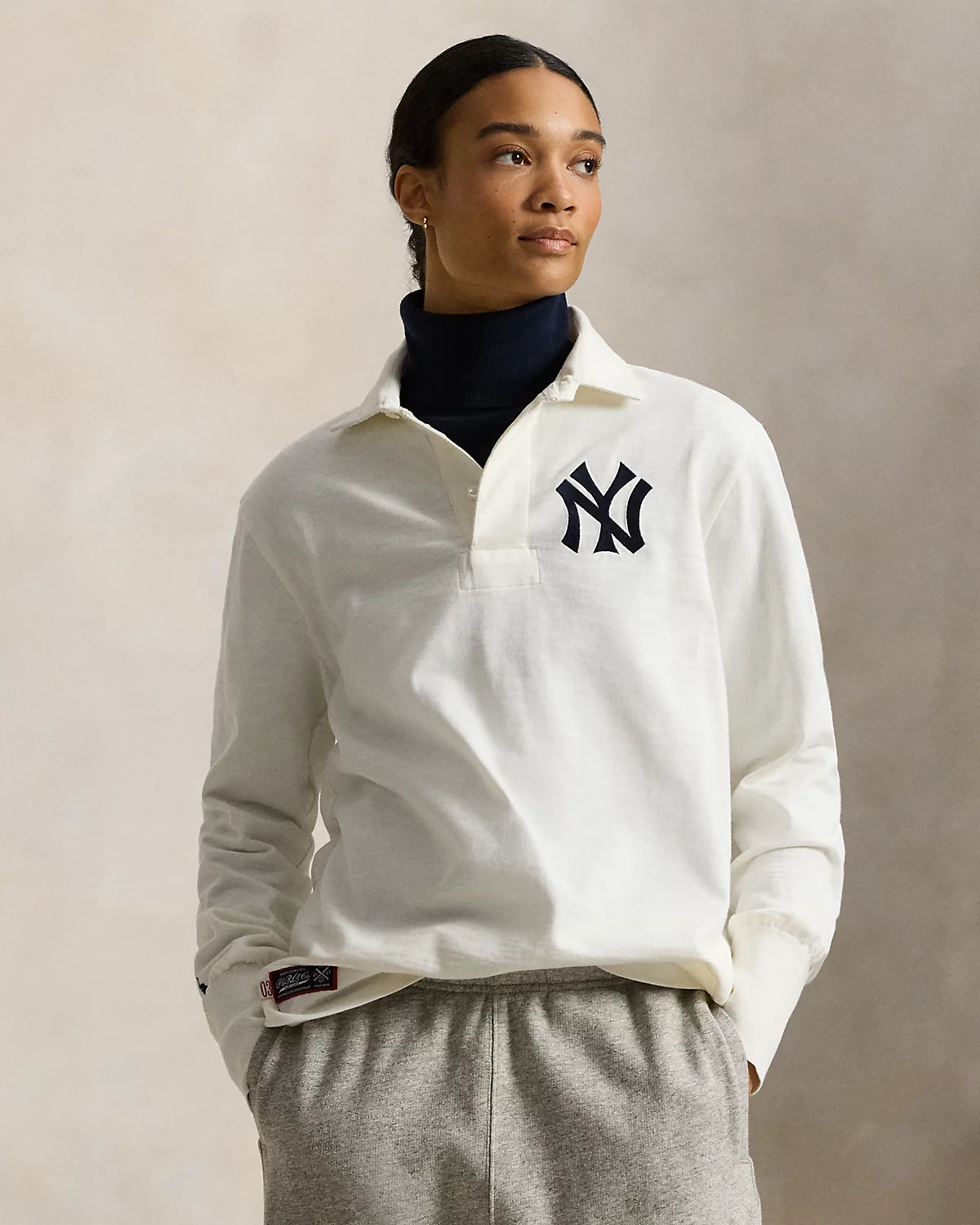 As a boy growing up in the Bronx, Mr. Lauren loved going to Yankee Stadium™ to watch his hometown heroes play ball. This unisex rugby shirt celebrates Mr. Lauren’s long-standing love of the Bronx Bombers™ and the game of baseball with a New York Yankees™ logo patch and our signature embroidered Pony. Crafted with soft cotton jersey, it features a twill “1903” patch at the back that nods to the team’s founding year.