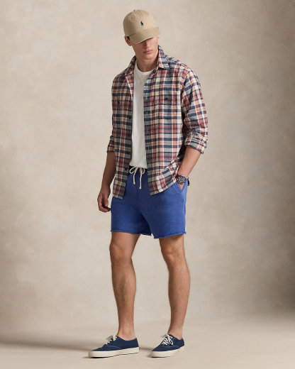 These unisex cotton-blend shorts achieves an authentic vintage look with their slub fleece fabric and a garment-dye treatment.