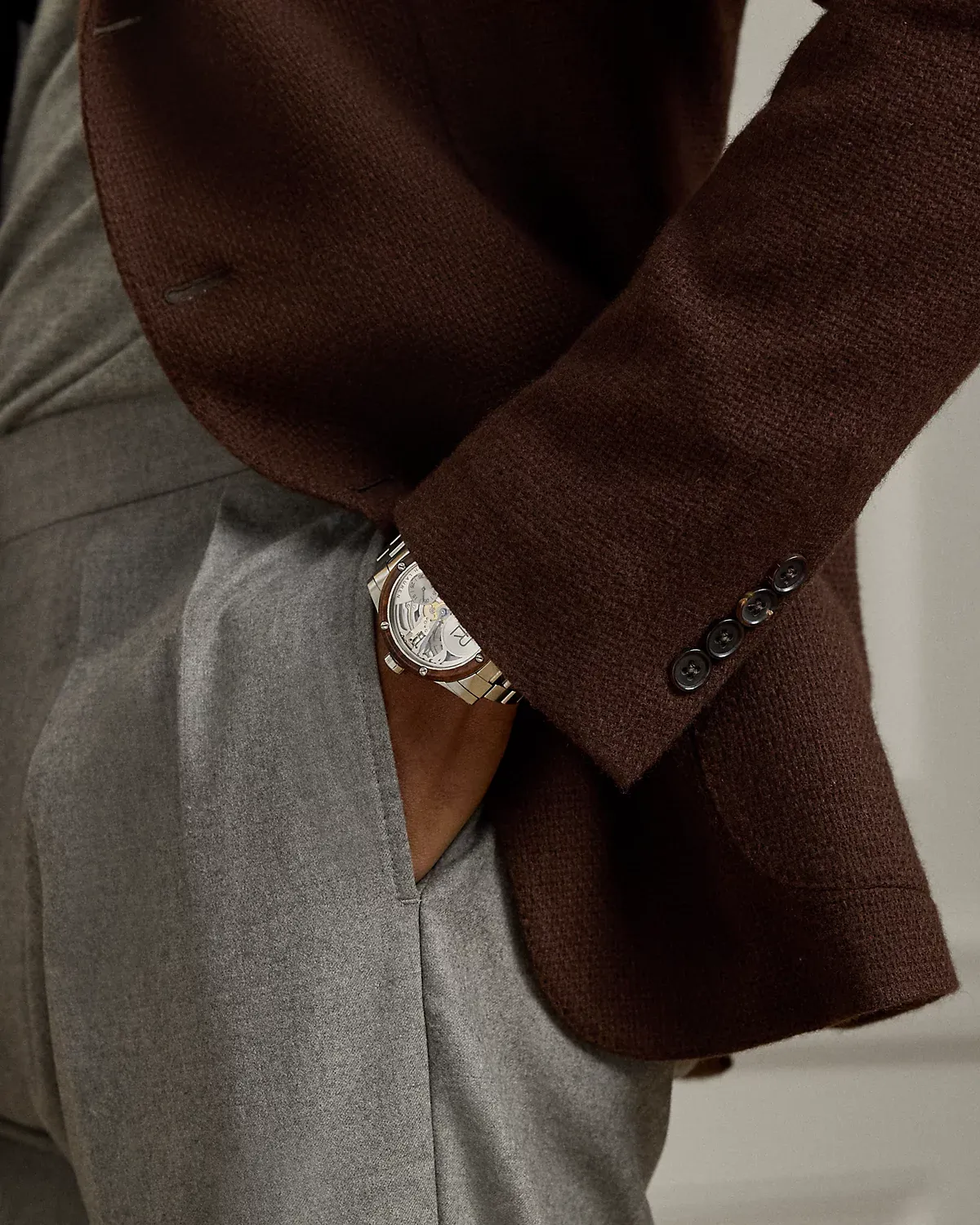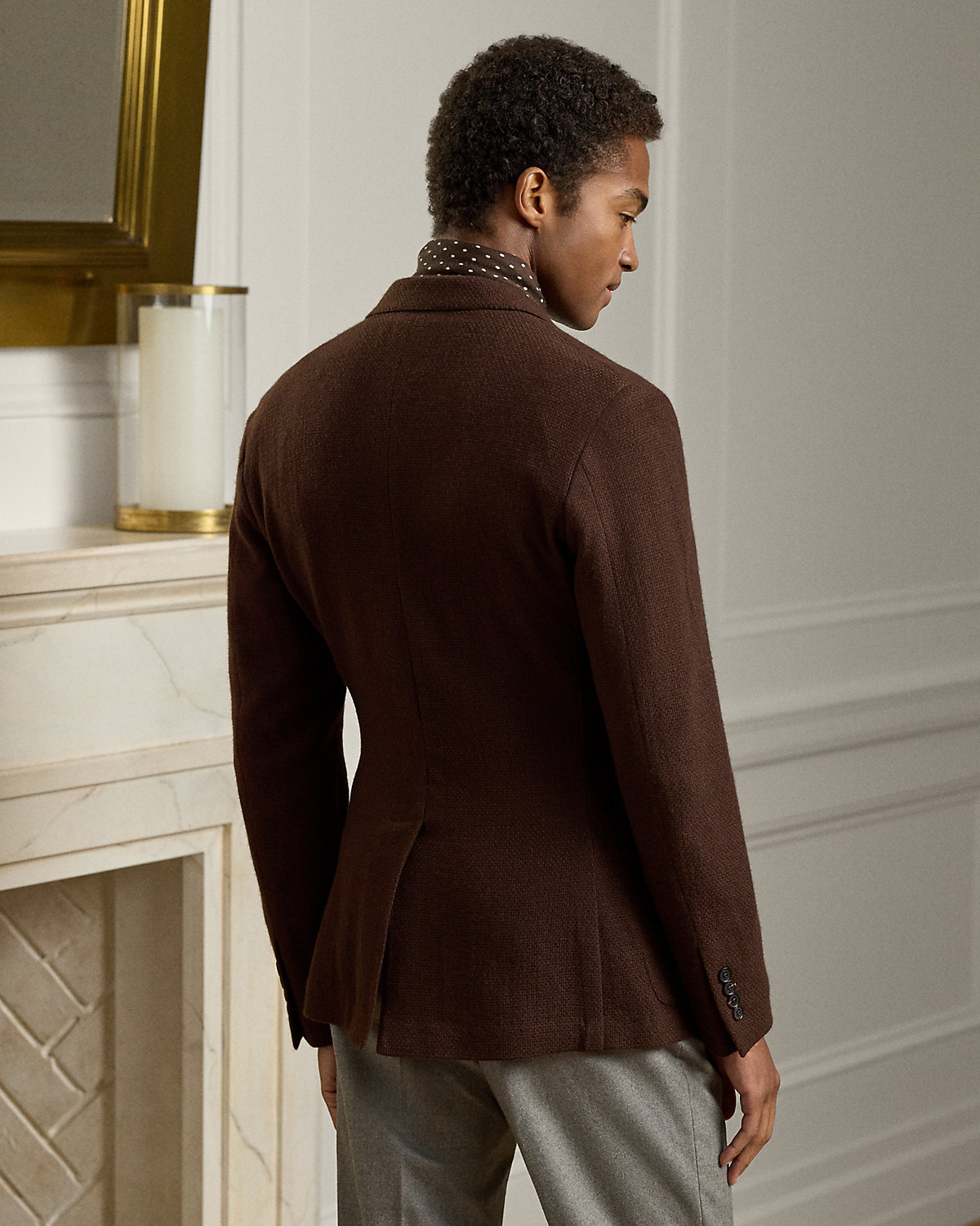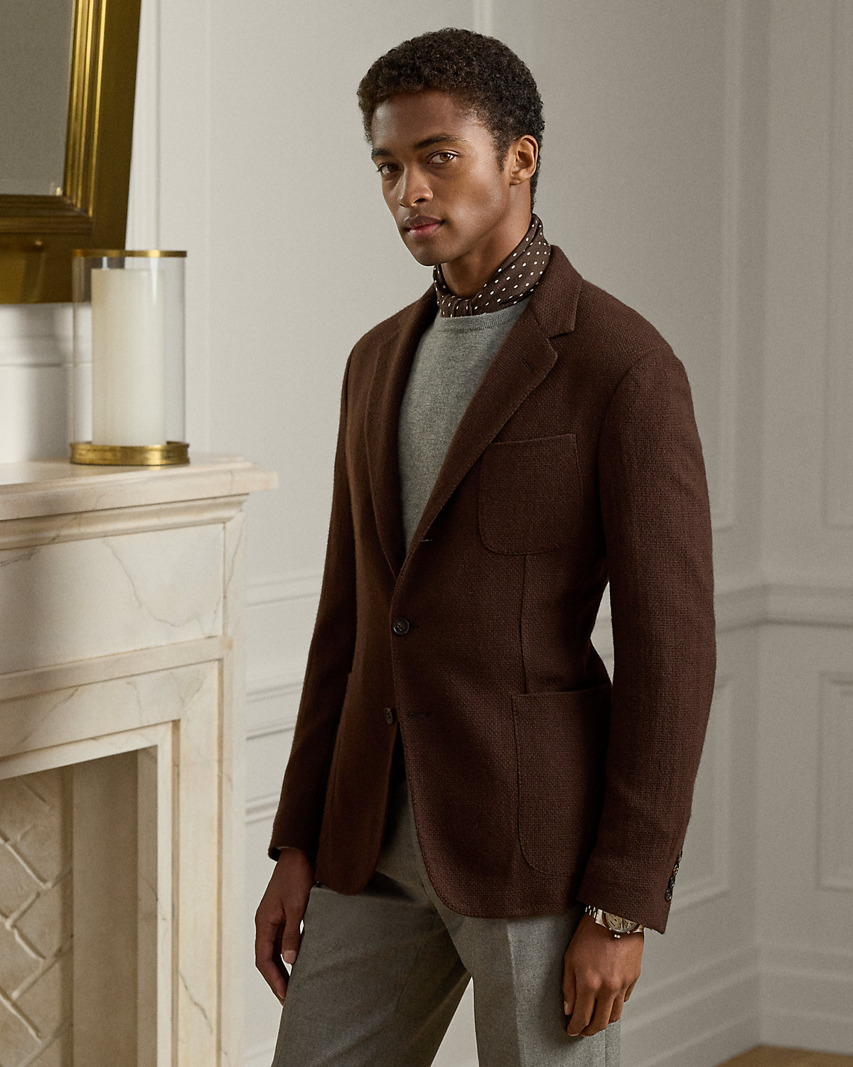 Tailored by hand in Italy, the Hadley is defined by its soft shoulder and exceptionally light weight. This version is crafted with a textured, open-weave cashmere fabric that was custom-developed with a famed English mill that has been creating luxury textiles for more than 250 years.