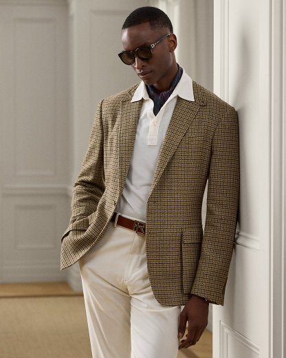 Hand-tailored in Italy, the Kent combines a lighter construction with fine canvassing and a soft shoulder to create a more natural profile. This Glen plaid version is expertly crafted using a linen-and-wool fabric that was custom-developed for Ralpthth Lauren. At the undercollar and elbows, it is finished with supple suede.
