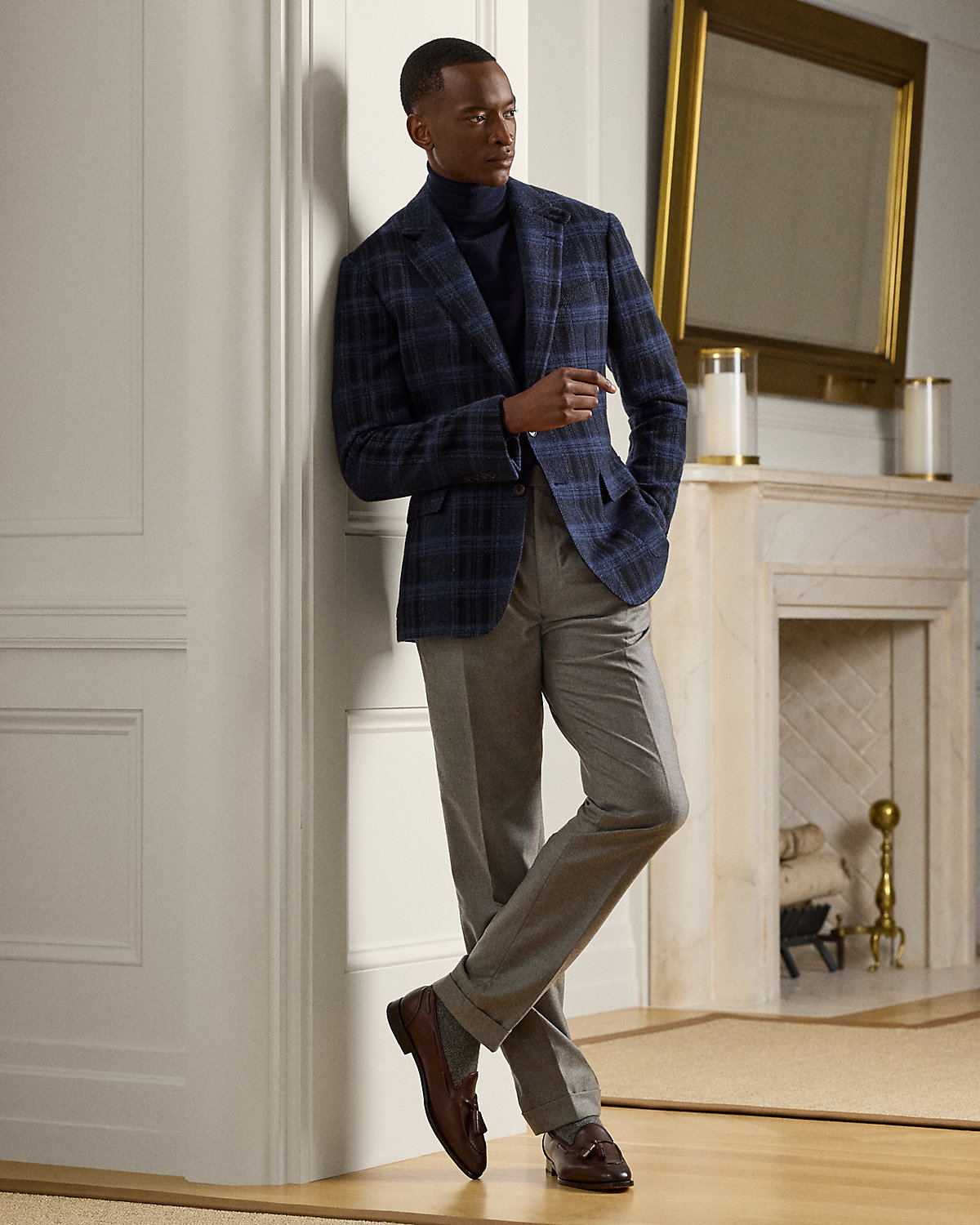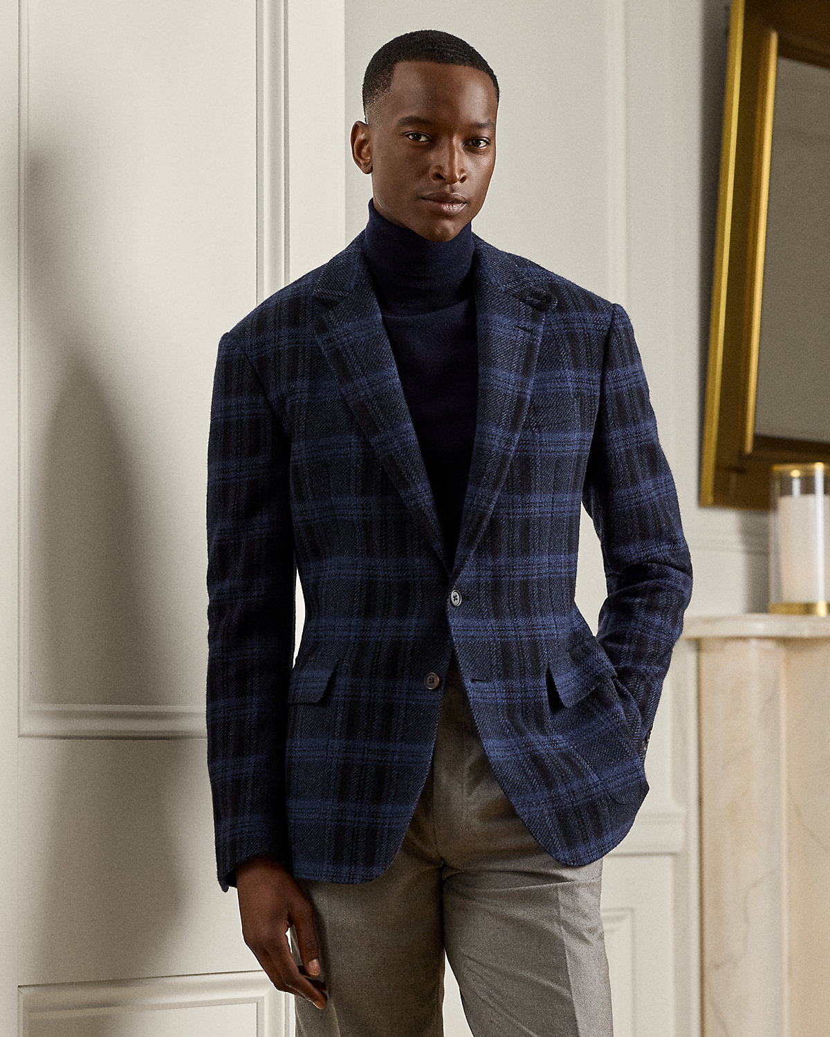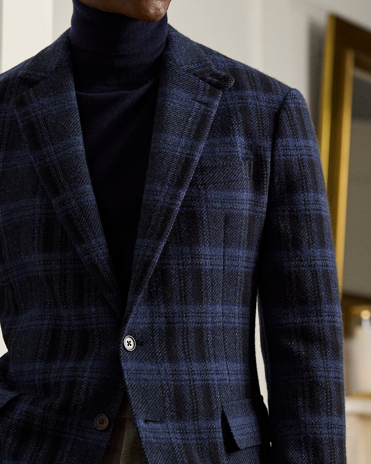 Expertly tailored by hand in Italy, the Kent combines a lighter construction with fine canvassing and a soft shoulder to create a more natural profile. This version’s custom-developed wool tweed offers a luxurious texture along with an outstanding drape. It features Purple Label’s take on a tartan-inspired motif, which is rendered in blue hues found throughout the season’s collection.
