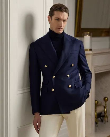 Handcrafted in Italy, the Kent combines a lighter construction with fine canvassing and a soft shoulder to create a more natural profile. This version’s cashmere twill is one of the most iconic fabrics in Purple Label and was personally selected by Mr. Lauren. Luxurious and elegant, the cloth was custom-developed for Purple Label with a storied English mill.