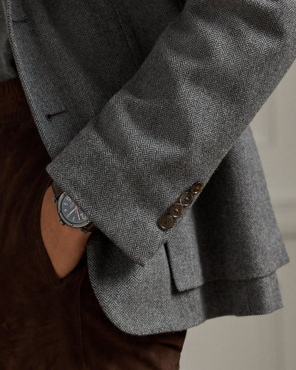 Made by hand in Italy, the Kent combines a lighter construction with fine canvassing and a soft shoulder to create a more natural profile. This herringbone version is crafted with two-ply, Super 150s wool twill that is unique to Purple Label.
