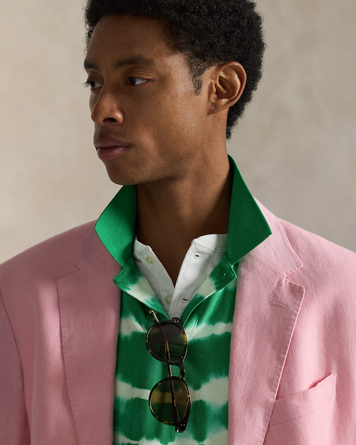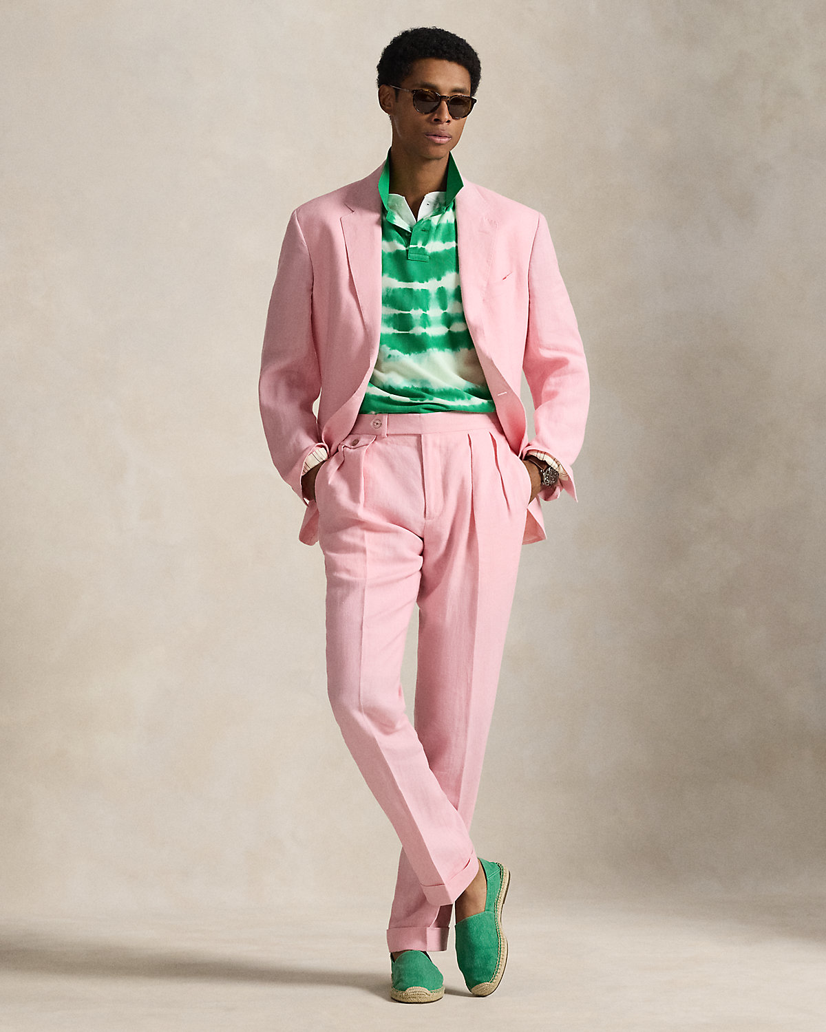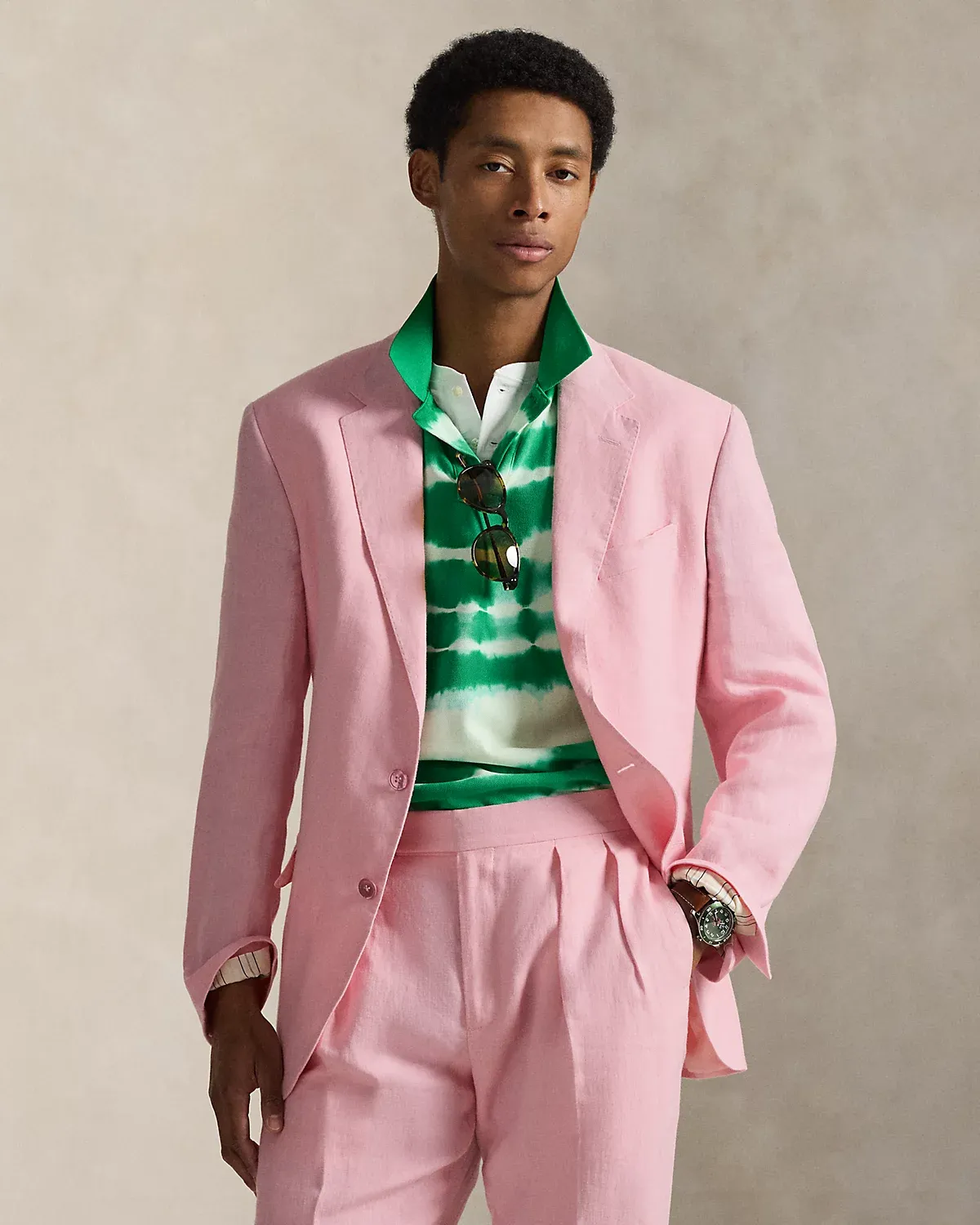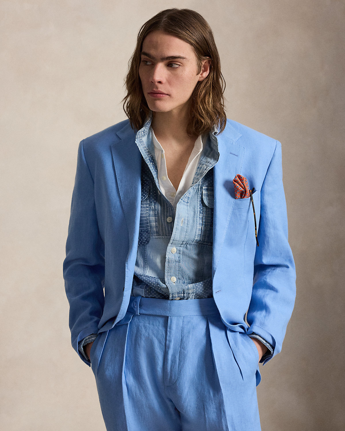 Our Polo suit jacket offers more structure in the chest and shoulders. This version is crafted with a custom-developed linen fabric that is breathable and lightweight.