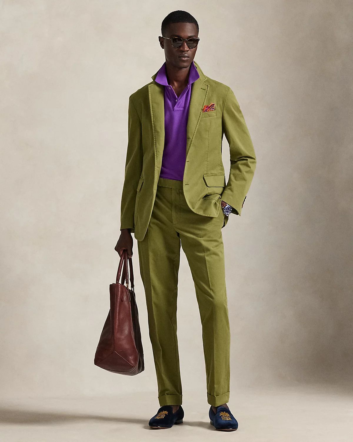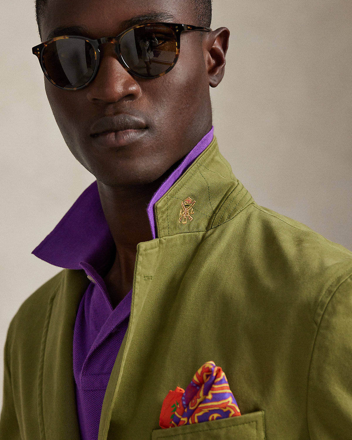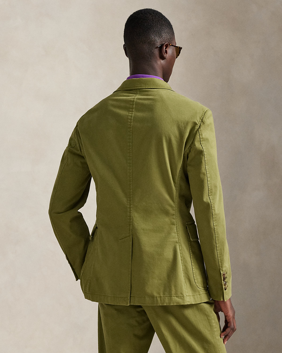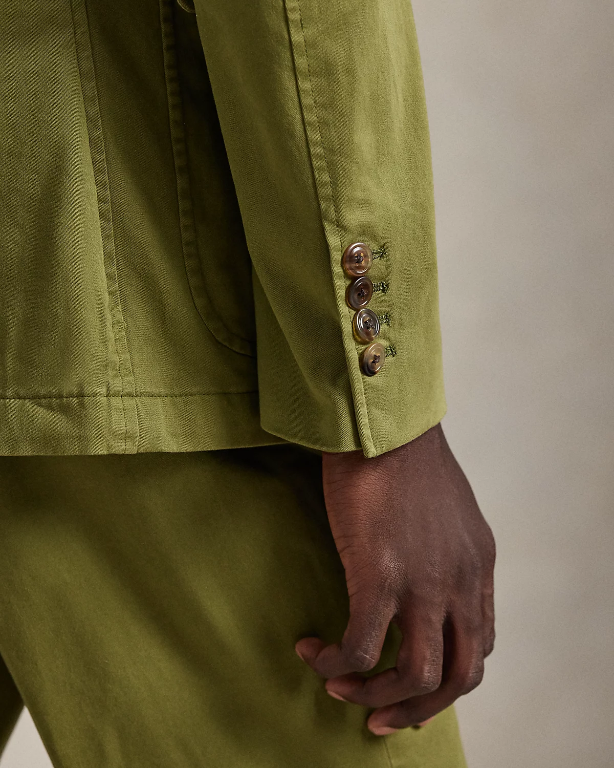Our Polo jacket offers more structure in the chest and shoulders. This version is expertly tailored from a custom-developed chino cloth that was woven with a hint of stretch for ease of movement. It is garment-dyed for a saturated color with beautiful variations in tone.