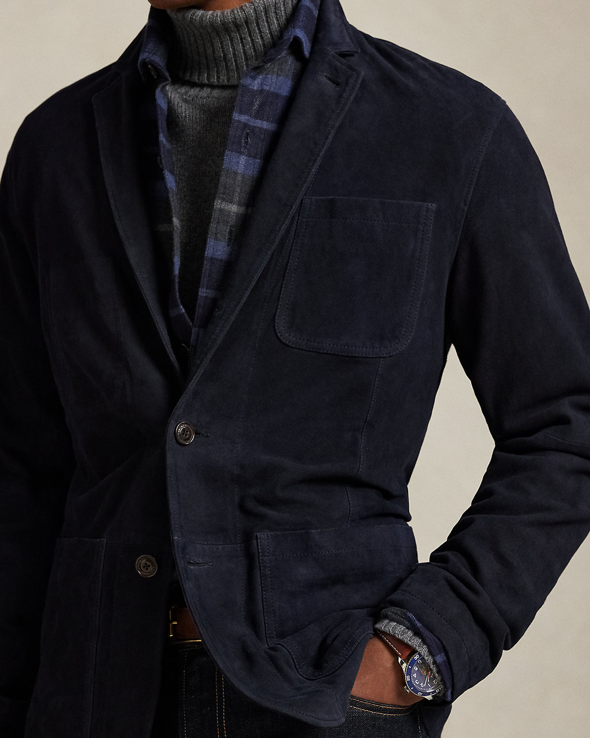 To create this jacket, we reinterpreted a silhouette inspired by our most lightly constructed Polo sport coat with soft suede and corozo divs.