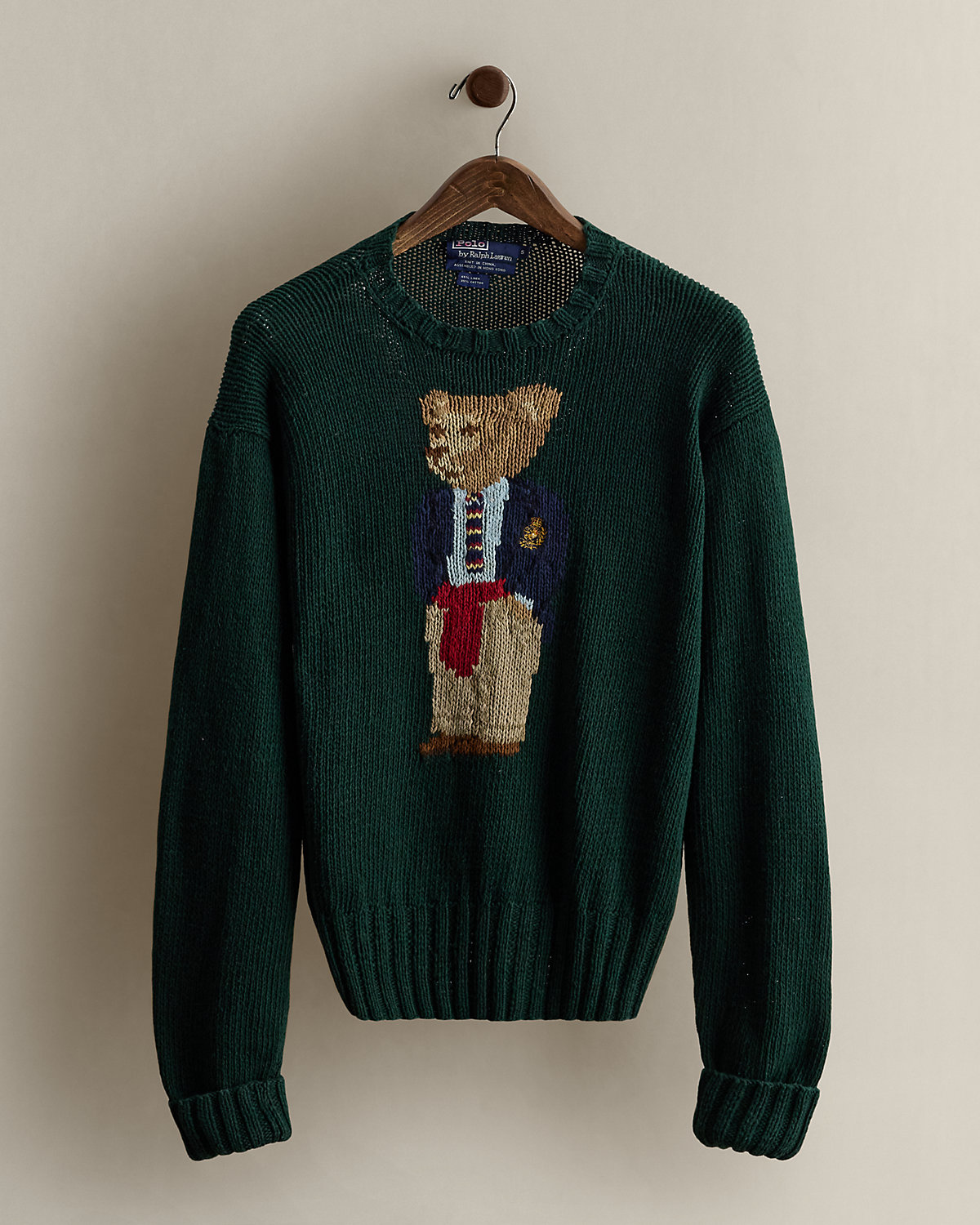 - Polo Bear knit at the center front.