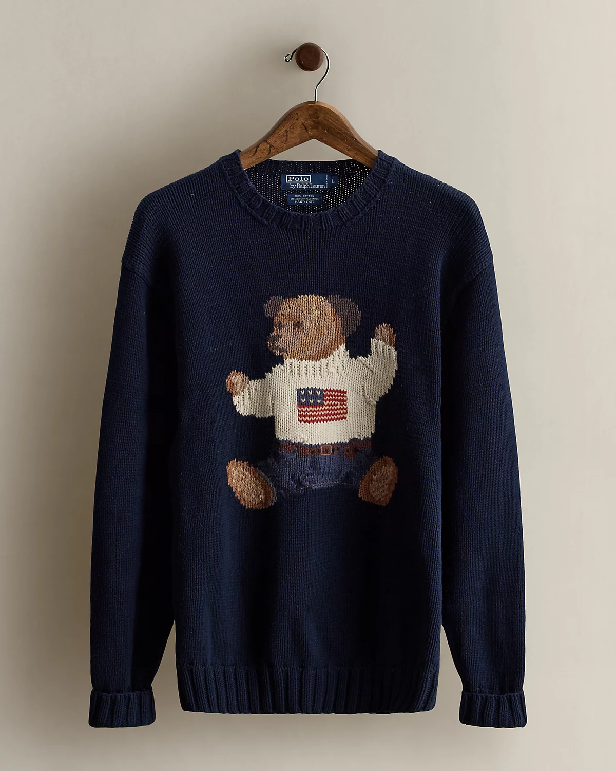 - Polo Bear knit at the center front.